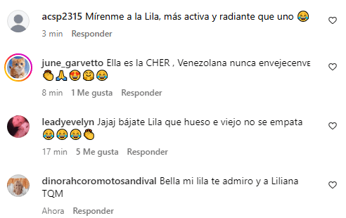 “Hola, Lila tengo 43 años, y veo que estás muy bien moviéndote”, “Lila eres mi inspiración cuando tenga tu edad no hacer el ridículo”, “Me encanta el cabello de lila súper natural”, “Lila eres inspiración”, son algunas de las opiniones.