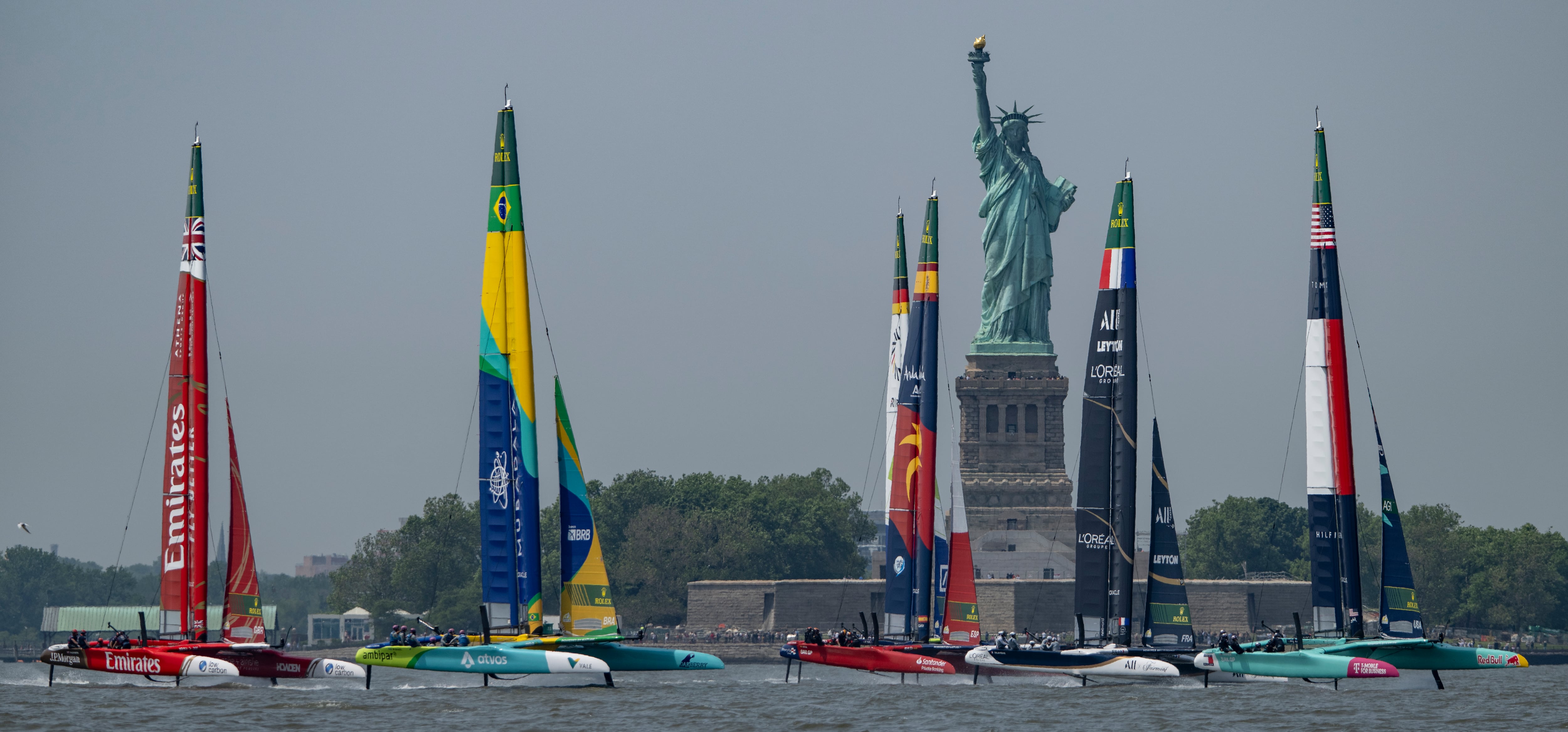 Antes de zarpar, barcos con tres tripulantes y no el tope de seis, no hay viento y hay que volar sin peso, habla Diego Botín, el conductor de barco español: “Somos un equipo remontador. Vamos siempre de atrás adelante. Lo más flojo nuestro son las salidas, pero ya alrededor del campo nos desarrollamos bien”. No había pasado ni un minuto cuando la carrera le dejó en falso. Como si al volante estuviera un Max Verstappen, su F50 salió lanzado, el primero, en progresión, y en un santiamén abrió hueco con el resto de la flota, 11 barcos tan manejables como camas de hospital en pasillos estrechos. Fue el inicio de un gran mediodía de regatas en Nueva York. La primera jornada, tres carreras, terminó con España primera, con 25 puntos (una victoria, un cuarto y un tercer puesto), por 20 de Dinamarca y Francia.