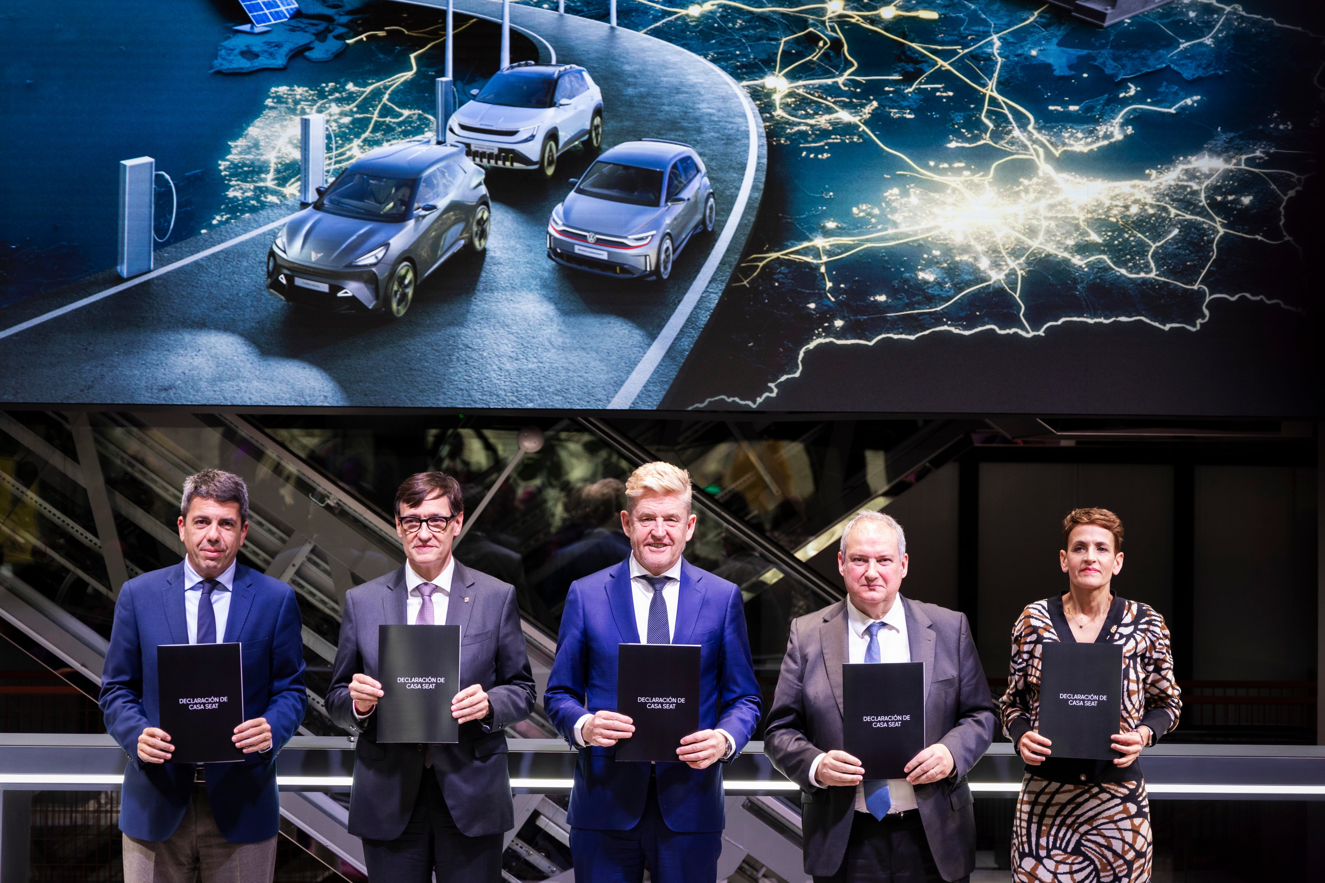La llamada Declaración de Casa Seat, firmada en el edificio que la compañía tiene en el centro de Barcelona, llega precisamente justo después de que algunas ayudas al coche eléctrico previstas por el Gobierno hayan quedado en el aire con el rechazo del decreto ómnibus por parte de PP y Junts. Pero esto no ha impedido que de nuevo reinara el optimismo en el acto conjunto, en el que ha participado Griffiths, el ministro de Industria, Jordi Hereu, y los presidentes de la Generalitat de Cataluña, Salvador Illa, de la Generalitat Valenciana, Carlos Mazón, y de la Comunidad Foral de Navarra, María Chivite.
