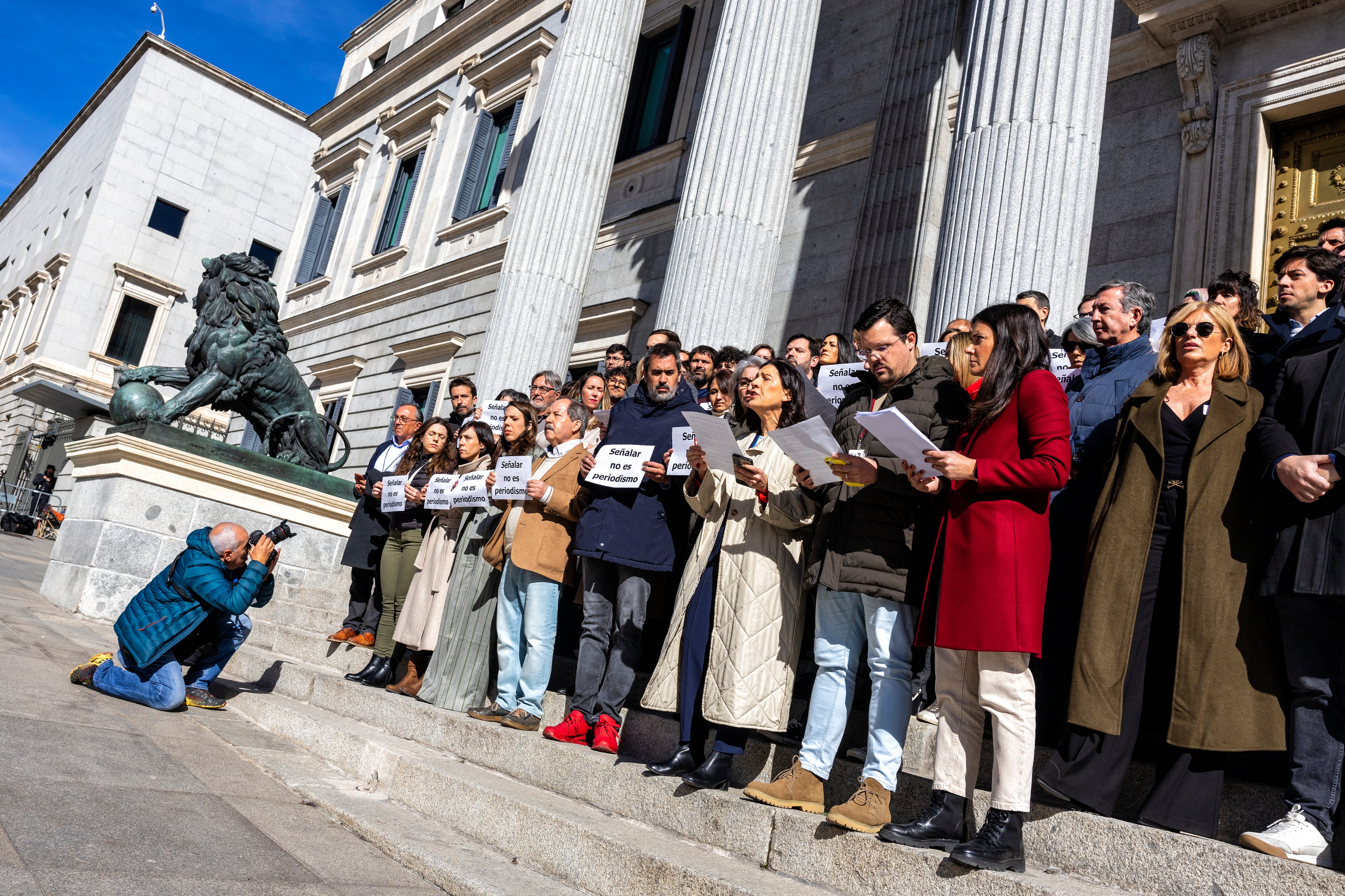 En una reacción sin precedentes, unos 80 informadores de la inmensa mayoría de los medios acreditados en las Cortes se concentraron el pasado miércoles ante la puerta de los leones para denunciar el “comportamiento inaceptable” de agitadores que, acreditados como periodistas, chantajean con “descalificaciones, insultos, señalamientos” y amenazas en las redes sociales.