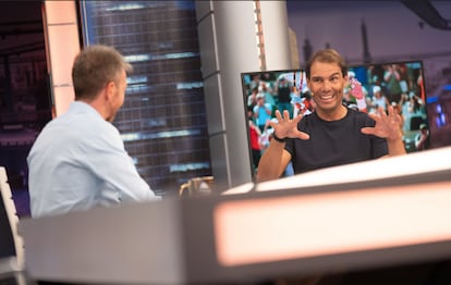 El presentador, que huele cuando la cosa fluye, vio a un Nadal sereno, con pocas ganas de verbena, de convertirse en trending topic sin necesidad, así que tiró de repertorio para no hacer daño. ¿Cuánto pesa la antorcha olímpica? ¿Sigues con el vicio de la Nutella? ¿Los cambios de la paternidad bien? El de Manacor —qué ganas de escribir esto desde siempre— jugaba en casa y no tenía muchas ganas de complicarse la vida. Pesa un poco pero en aquel viaje por el Sena “nos cayó una tormentilla importante”. No quiere confesar si se pasa con el chocolate por si le escucha la nutricionista. Ser padre le ha cambiado en muchas cosas y casi todas para bien. España está tranquila, aunque quizá un poco aburrida.