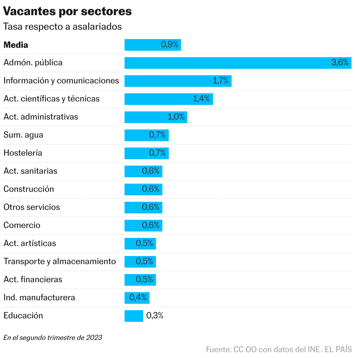 La patronal insiste desde hace años en que la falta de mano de obra es uno de los problemas centrales de la economía española, mientras que los sindicatos, que conceden que hay tensión en algunos sectores, creen que esa supuesta escasez se debe a condiciones laborales pírricas, que no captan empleados interesados. UGT recuerda que muchas personas en paro “se encuentran en España en riesgo de pobreza, por lo que no pueden permitirse rechazar una oferta de empleo; las causas de la puntual falta de personas dispuestas a trabajar en alguna actividad son, en términos generales, ajenas a la voluntariedad de las mismas”. “El problema del mercado laboral en España no es el exceso de vacantes sino todo lo contrario: el infradesarrollo del tejido productivo para incorporar a los millones de personas desempleadas, demandantes de empleo o desanimadas que nos harían converger con los niveles europeos de actividad laboral”, reflexiona CC OO en un estudio al respecto, en el que desagrega las vacantes por sectores.