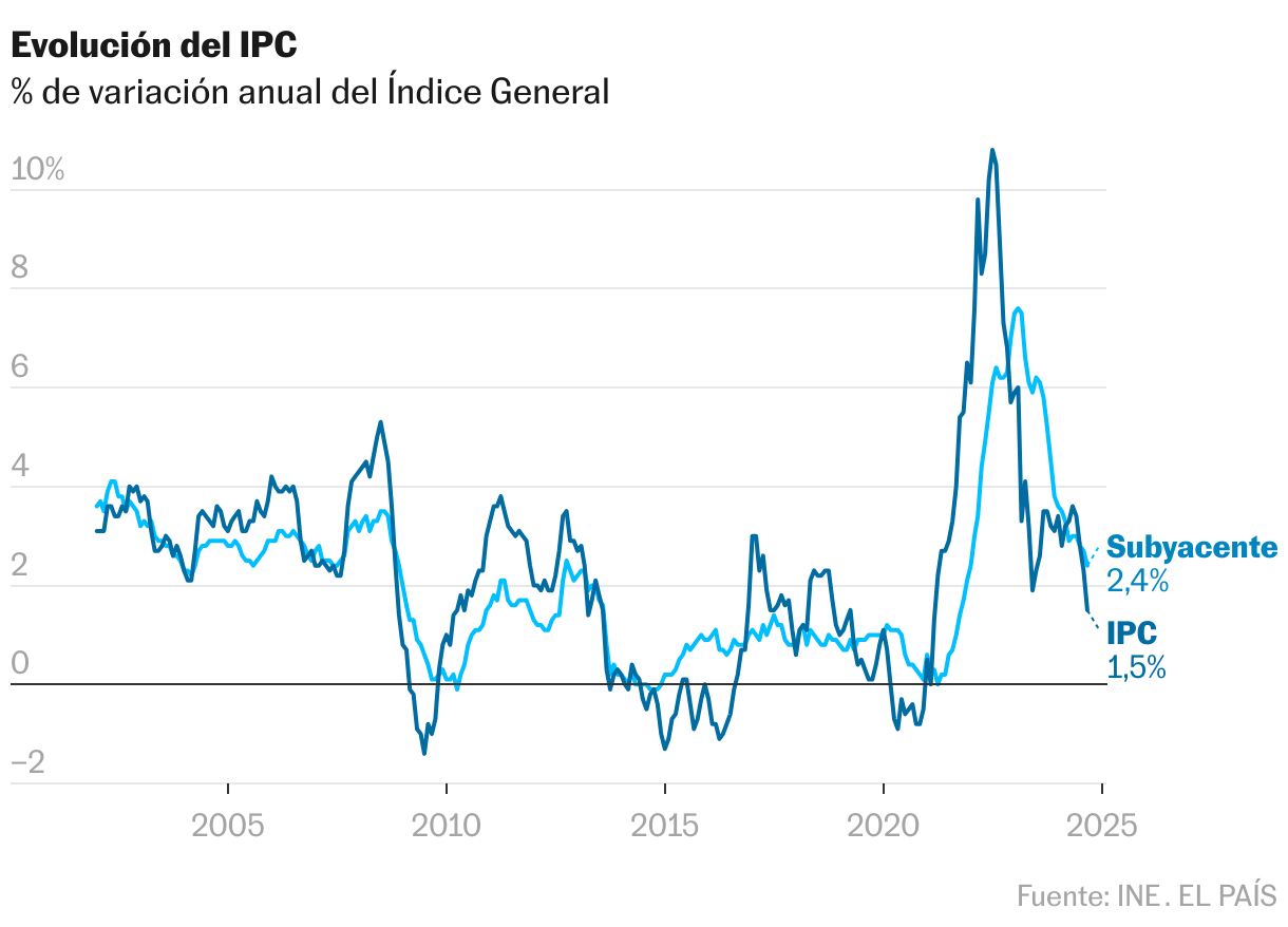 El Índice de Precios de Consumo (IPC) bajó un 0,6% en septiembre en relación con el mes anterior y recortó ocho décimas su tasa interanual, hasta el 1,5%, su menor cifra desde marzo de 2021, cuando se situó en el 1,3%, según los datos publicados este martes por el Instituto Nacional de Estadística (INE), que coinciden con los avanzados a finales del mes pasado.