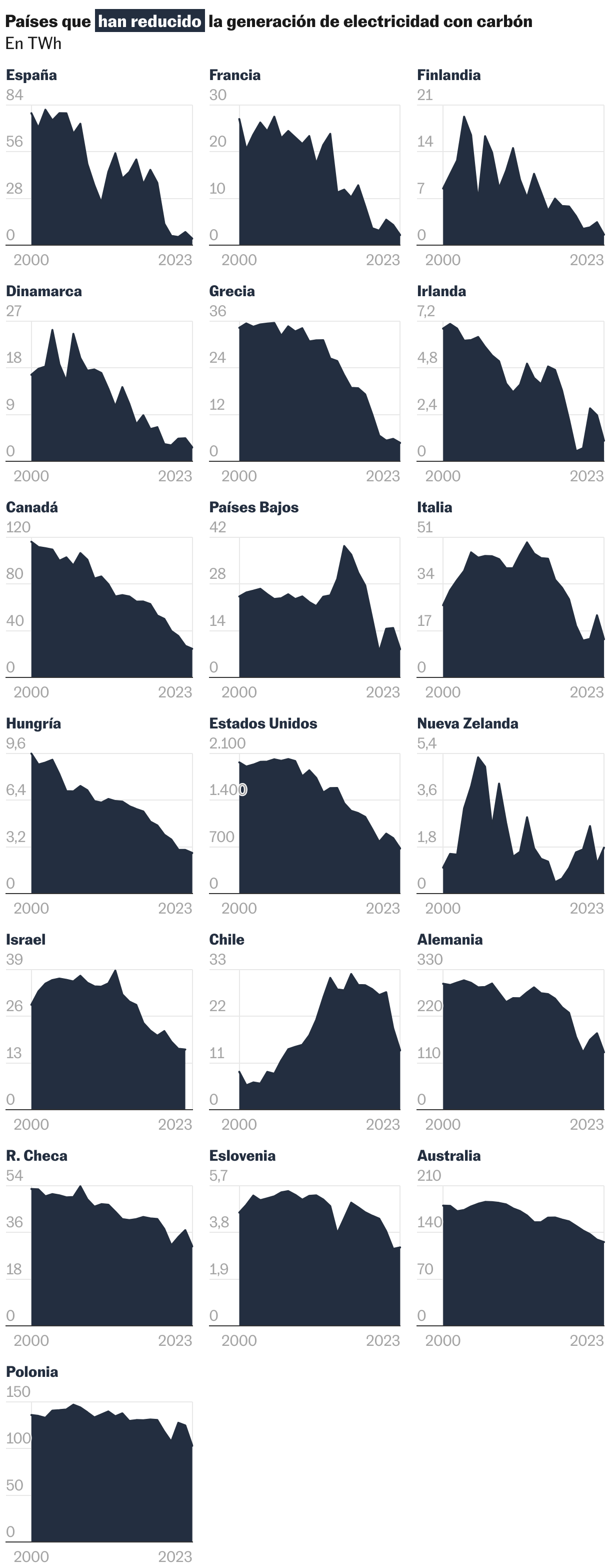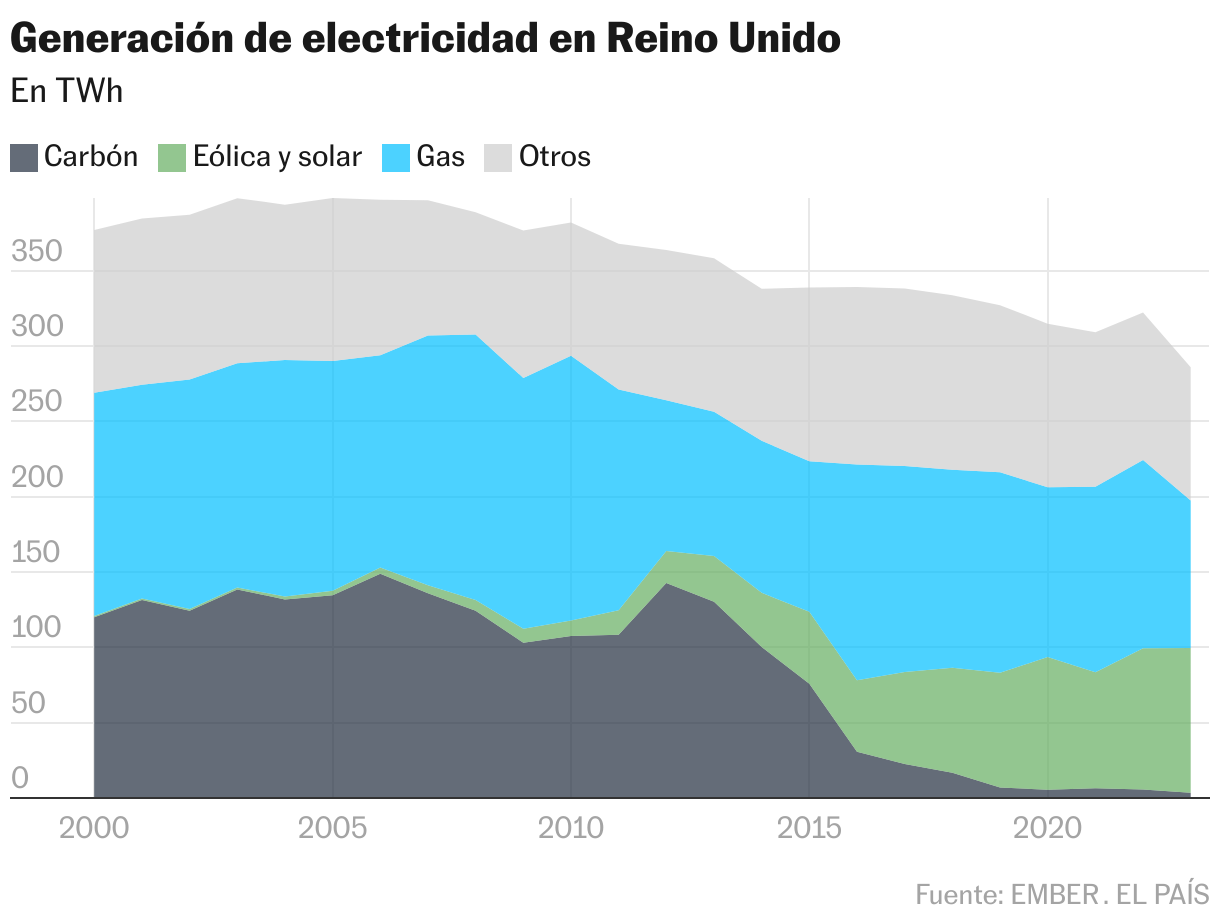 “El cierre de Ratcliffe pone fin a una era. Los mineros pueden estar orgullosos de un trabajo que proporcionó energía al país durante 140 años. Muchas generaciones de este país tenemos con ellos una deuda de gratitud”, ha dicho Michael Sanks, el secretario de Estado británico de Energía. Esta eliminación gradual en el Reino Unido ha permitido que desde 2012 se dejen de emitir 880 millones de toneladas de dióxido de carbono (el equivalente a más del doble de las emisiones totales de toda la economía del país en 2023). Además, según los cálculos de Ember, la sustitución de este combustible por la eólica y la solar ha supuesto un ahorro de 2.900 millones de libras (unos 3.475 millones de euros).