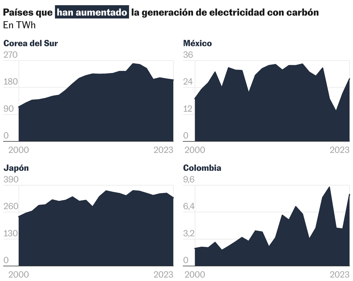 Las preocupaciones de los expertos climáticos internacionales se centran ahora en algunos de los países emergentes en los que el consumo de carbón sigue creciendo. El último balance sobre este combustible de la Agencia Internacional de la Energía (AIE) apuntaba a que en 2023 la demanda de este combustible caería de nuevo en casi todas las economías avanzadas, encabezadas por la UE y EE UU. Sin embargo, ese descenso se compensaría con los crecimientos previstos para el año pasado en China, la India, Indonesia, Vietnam y Filipinas.