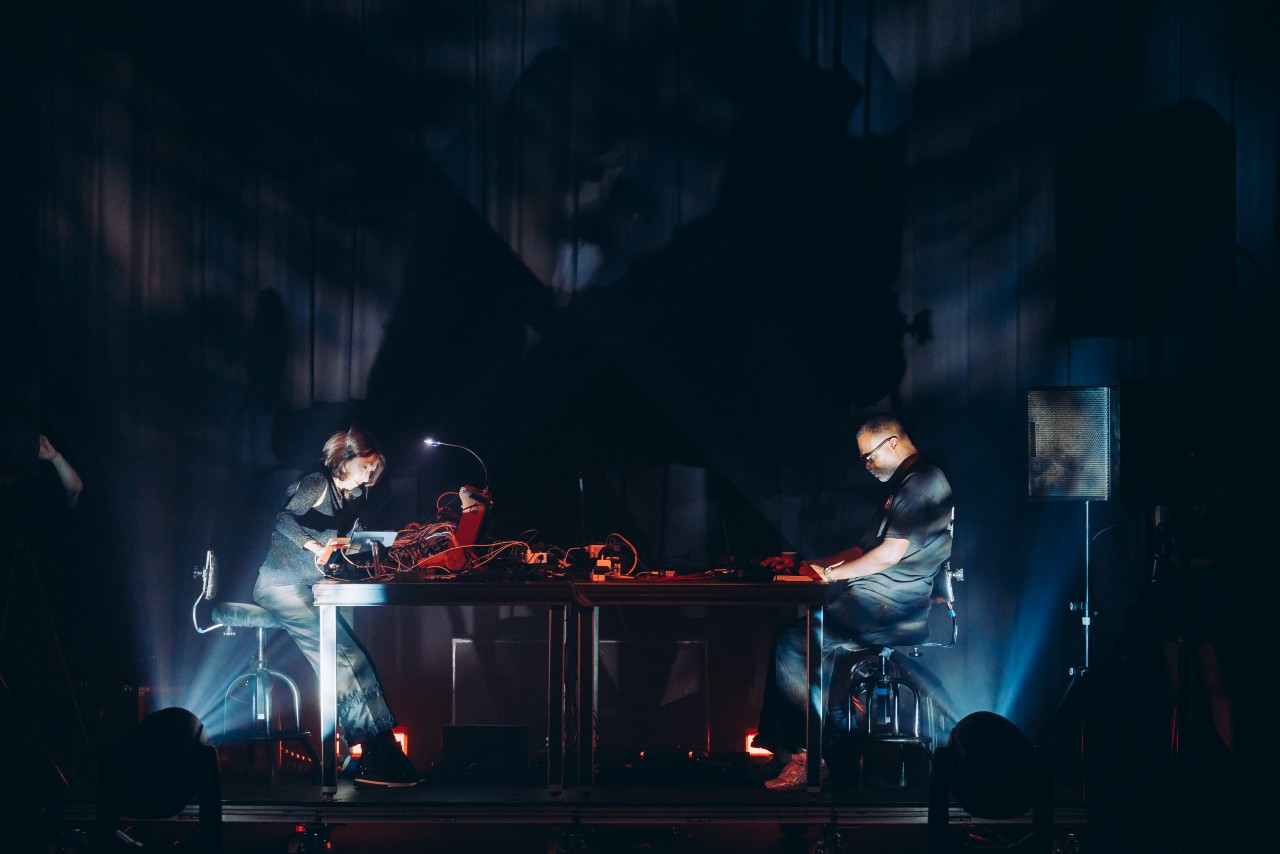 La gran cita de la jornada, quizás del festival, es el encuentro en la cumbre entre Suzanne Ciani, la histórica pionera de los sintetizadores y Actress, el productor de techno británico. Dos generaciones, dos modelos de entender la electrónica, que logran empastarse de manera increíble en su proyecto ‘Concrète Waves’. Sentados frente a frente en una gran mesa, actúan como aplicados orfebres del ruido. Su único adorno, los rayos de luz que acompasan su música. No se sabe quién propone qué: si Actress los ritmos y bpm, si Ciani el ambiente sonoro. Aquí hay latidos de animal tenso, peligro y paisajes sonoros, que me remiten al metro o a la selva. A paisaje urbano que vira a febril oficina con derrapes de guitarras hasta acabar convertido en la BSO de ‘Metrópolis’. Cada vez van subiendo el volumen, los latidos. A Suzanne se la ve exultante, sonriente. Actress está más serio y concentrado. Hay ritmo de bombardeo, los haces de luces bombardean también. Se calman un poco, como una nana con los bpm desbocados. Acaban rítmicos. Bailables. Marchan agradecidos, y tan aplicados como aparecieron.