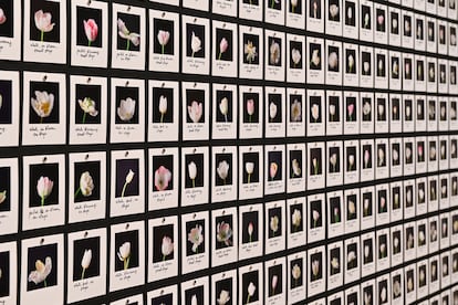 “Hay profecías negativas cuando escuchamos inteligencia artificial que provocan fascinación y rechazo”, explica Vallhonrat, “se cree que va a sustituir al ser humano y dejarle además sin trabajo y no es así”. Para defender esa postura, miles de tulipanes adornan un muro entero. La obra Myriad (Tulips) consiste en fotografías tomadas por la artista Anna Ridler durante tres meses en los Países Bajos, todas etiquetadas manualmente en función del color, forma y estado de la flor. Es una instalación que pone en evidencia “la responsabilidad de una artista en la construcción de datos que permitirá generar flores” y revela la dificultad de clasificar incluso algo tan simple como un tulipán. “Siempre habrá una persona detrás”.