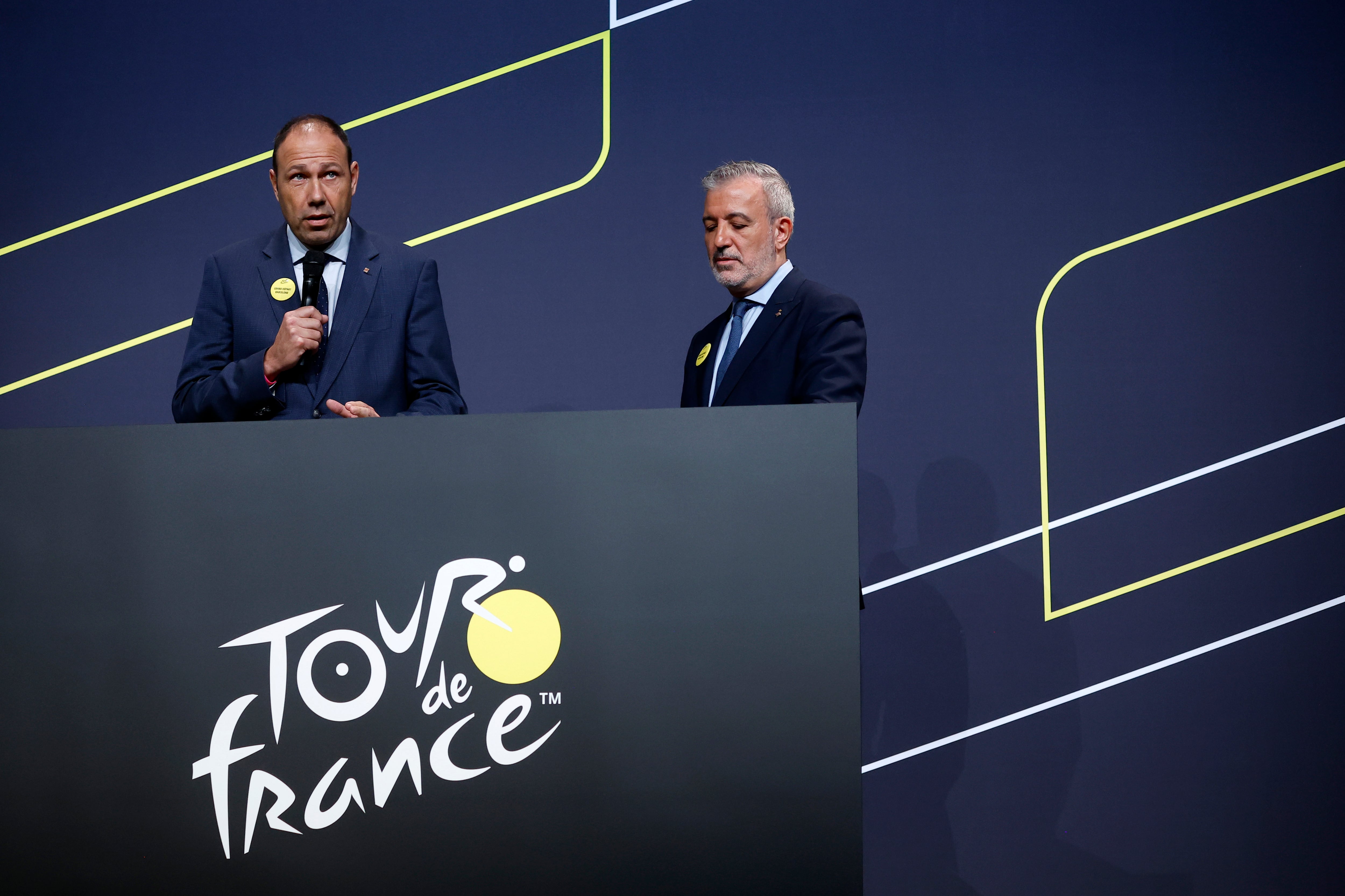 “Ah, Barcelona, la ciudad de los prodigios que la llamó Eduardo Mendoza”, se extasía Christian Prudhomme, el jefe del Tour: “Ah, las torres de la Sagrada Familia, qué buena pareja con nuestra torre Eiffel, principio y final de la carrera”. Y el alcalde de Barcelona, Jaume Collboni, y el consejero de Deportes de la Generalitat de Catalunya, Berni Álvarez, le responden felices y orgullosos, en francés, buena educación obliga, y en catalán. “Estamos preparados. El Tour será una gran fiesta popular. Somos la primera ciudad que ha acogido los eventos más importantes del mundo, el Mundial de fútbol, los Juegos Olímpicos, la Copa del América de vela, la salida del Tour”, resume Collboni. Y el final del vídeo promocional le regala el eslogan precioso: “Barcelona y el Tour, el mejor tándem”.