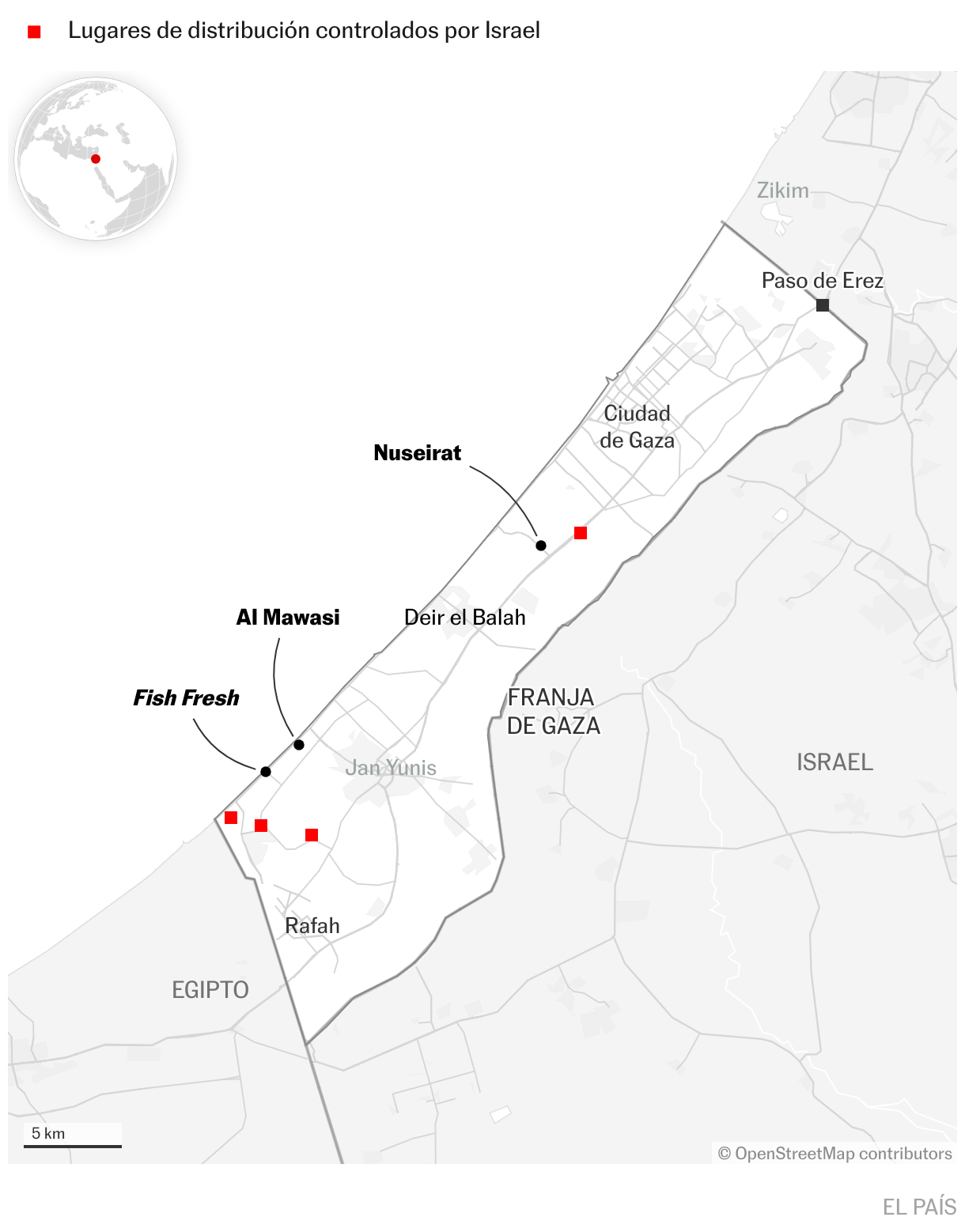 Este informe sobre el hambre afirma, además, que 9 de cada 10 hogares han asumido riesgos para obtener alimentos o los han rebuscado entre la basura. Como Ajour y sus acompañantes. Cuando los jóvenes llegaron cerca de los puntos de distribución, el pasado lunes, los peligros se multiplicaron. El ejército israelí había establecido un puesto de control a un kilómetro del lugar, usaba altavoces para dar órdenes y disparaba tiros de advertencia, granadas de sonido y gas pimienta para dispersar a la multitud. “Nos acercábamos, nos obligaban a retroceder y volvíamos a intentarlo una y otra vez. Yo avanzaba unos metros y luego daba media vuelta. Nos apuntaban con el láser y disparaban a la gente”, detalla.