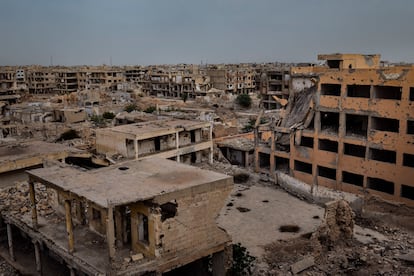 Ibarra Sánchez —-PIEDEFOTO—- Rawan Shogri, una maestra siria, da clase a Mohamed en la escuela Al Najjar Al Naal, recientemente rehabilitada por Unicef, en Douma, Siria, el 6 de abril. Shogri afirma: “Estamos destrozados por la situación de nuestros estudiantes. La calidad de la educación ha caído drásticamente”.Diego Ibarra SánchezUna imagen desfigurada del expresidente Bachar el Asad en las afueras de Tartús, Siria, el 10 de abril. Desde la destitución de El Asad en diciembre, los símbolos —carteles, vallas publicitarias y estatuas— que antes eran habituales en todo el país han sido desmantelados o desfigurados. Estos símbolos, comunes en edificios gubernamentales, ventanas de taxis, negocios y sitios históricos, eran herramientas que reforzaban el control del régimen.Diego Ibarra SánchezDos escuelas reducidas a escombros en el barrio de Jobar, en Damasco, el 6 de abril. Desde 2011, 7.000 centros educativos han sido destruidos. Muchos niños sirios recientemente desplazados y en situación de extrema vulnerabilidad nunca han pisado un aula.Diego Ibarra SánchezAya, estudiante de tercer grado, se dirige a la escuela temporal en el campamento Zahouria, en Homs, el 8 de abril. Se ha desplazado de un campamento a otro durante toda su vida y, con el apoyo de Unicef, accedió al sistema educativo por primera vez.Diego Ibarra SánchezUna escuela destruida en Douma, en una imagen del 6 de abril. Los colegios que aún funcionan lo hacen, en muchos casos, en condiciones extremas: con niños hacinados y sin mobiliario, libros de texto, agua potable o saneamiento.Diego Ibarra SánchezMohamed al Khalaf, retratado el 10 de abril en Latakia. Su hermana pequeña, Rahaf Louay al Khalaf, murió en una explosión causada por un artefacto sin detonar el 15 de marzo.Diego Ibarra SánchezBasima, de 11 años, frente a su casa, en una zona rural de Damasco, el pasado 7 de abril. Tras asistir a una sesión de concienciación sobre artefactos explosivos sin detonar, Basima convenció a su hermano menor, Kassem, de deshacerse de una colección de casquillos de bala que había llevado a casa.Diego Ibarra SánchezMohamed al Kadri, de 11 años, en la escuela Al Najjar Al Naal, en Douma, Siria, el 6 de abril. “Mi sueño para el futuro es convertirme en arquitecto”, cuenta. Diego Ibarra SánchezZain, de 13 años, juega al ajedrez el 9 de abril en Latakia, Siria, con el coordinador del programa de Mosaic, durante una visita domiciliaria como parte de su rehabilitación psicológica. Zain perdió tres dedos y tiene una lesión ocular por la explosión de un artefacto sin detonar.