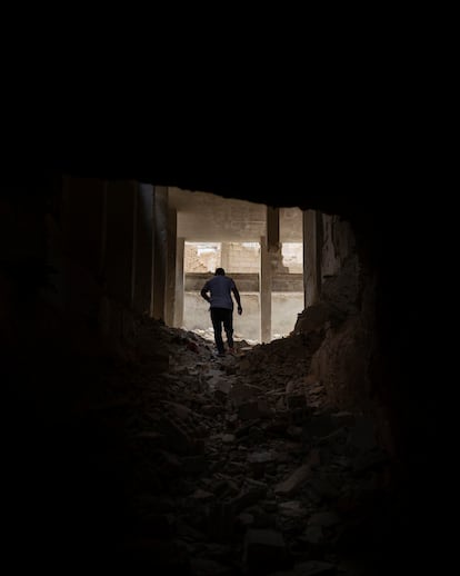 Diego Ibarra SánchezMohamad camina por los túneles en Jobar, que solían usarse para transportar civiles en ambulancia durante la guerra. Desde 2012 hasta 2018, el barrio se convirtió en un bastión de la oposición y soportó años de asedio. Los bombardeos destruyeron el 93% de sus edificios. Diego Ibarra Sánchez