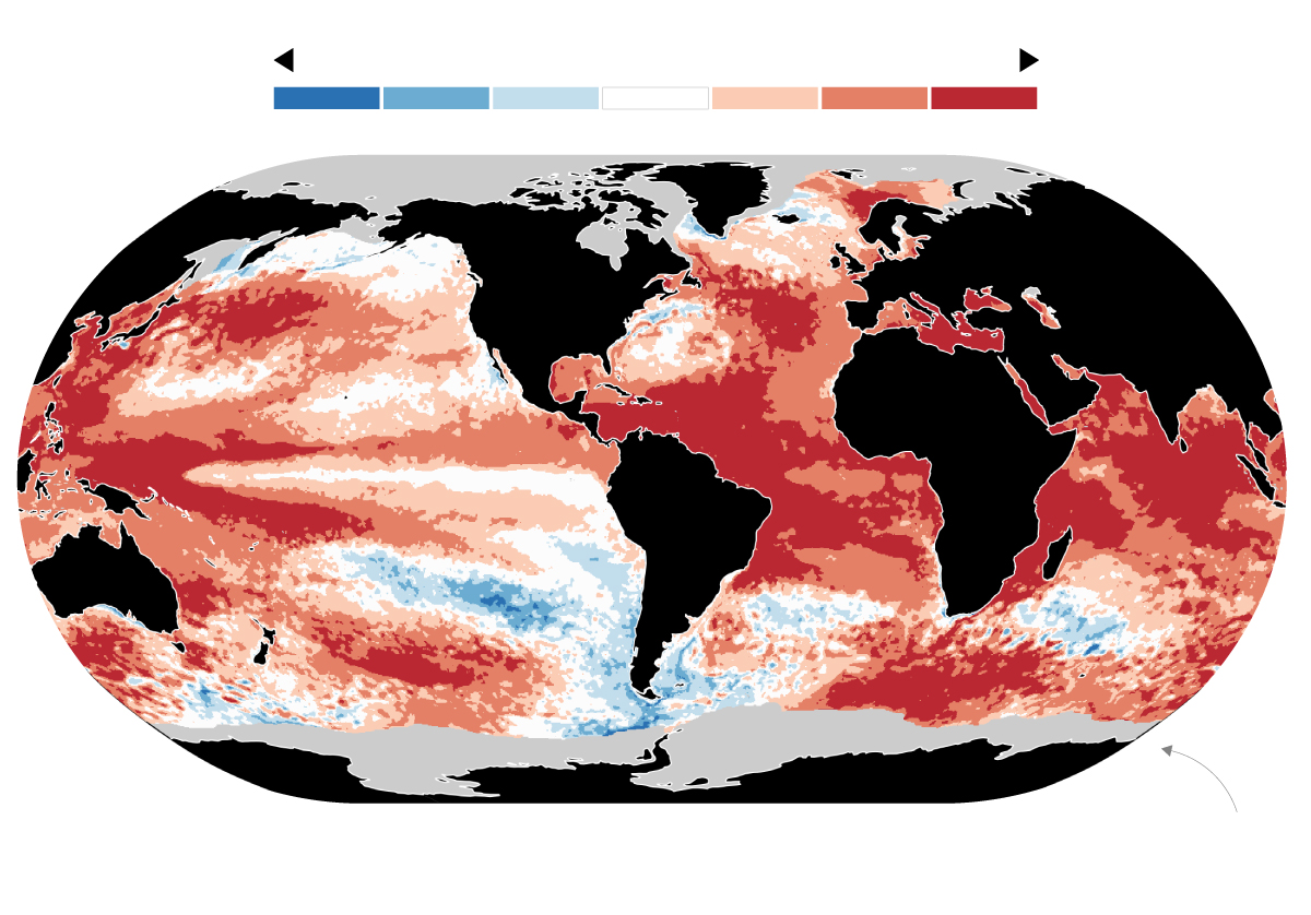 Esta preocupante marca se ha batido en todas estas zonas continentales, pero también en grandes partes del océano, en particular el océano Atlántico Norte, el océano Índico y el océano Pacífico occidental. Asimismo, este calentamiento afectó de forma especial al Mediterráneo, una de las circunstancias que están siendo vinculadas con el agravamiento de tormentas, tal y como se cree que pudo influir en la catastrófica dana del pasado octubre.