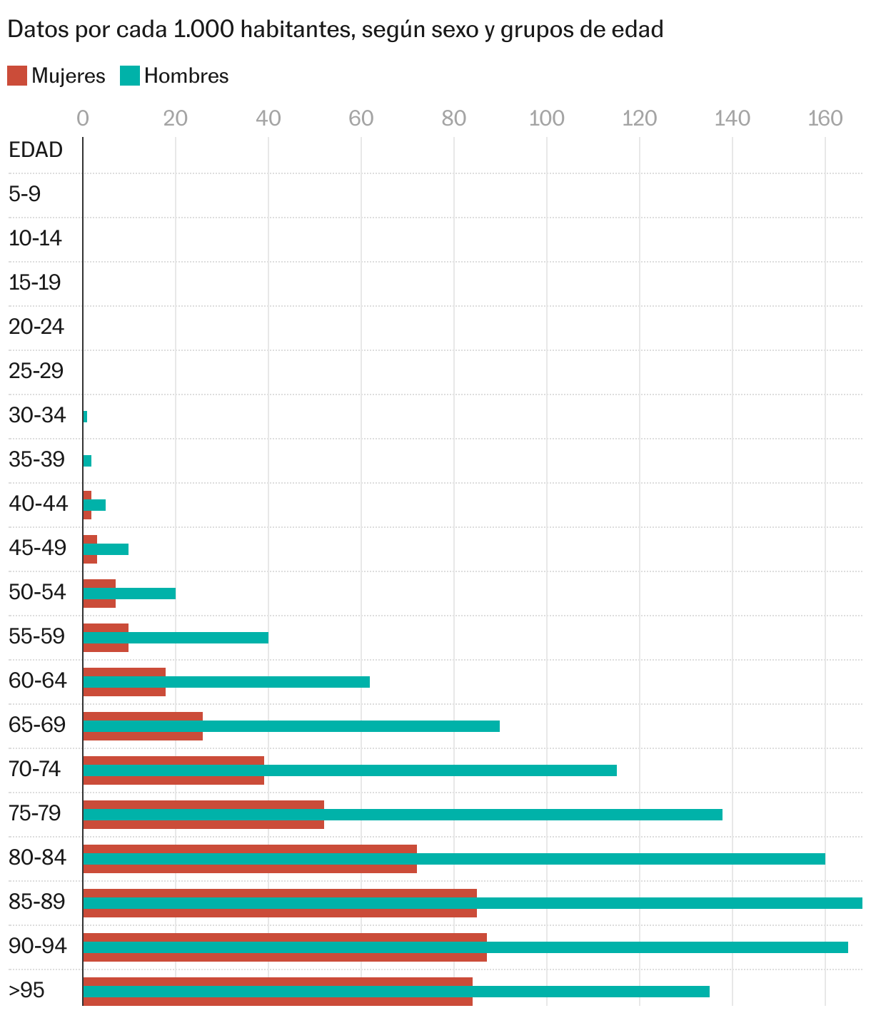 La prevalencia de la cardiopatía isquémica aumenta con la edad. Supera los 100 casos por cada 1.000 habitantes en hombres mayores de 70 años, en los que la prevalencia es 3 veces mayor que en las mujeres.