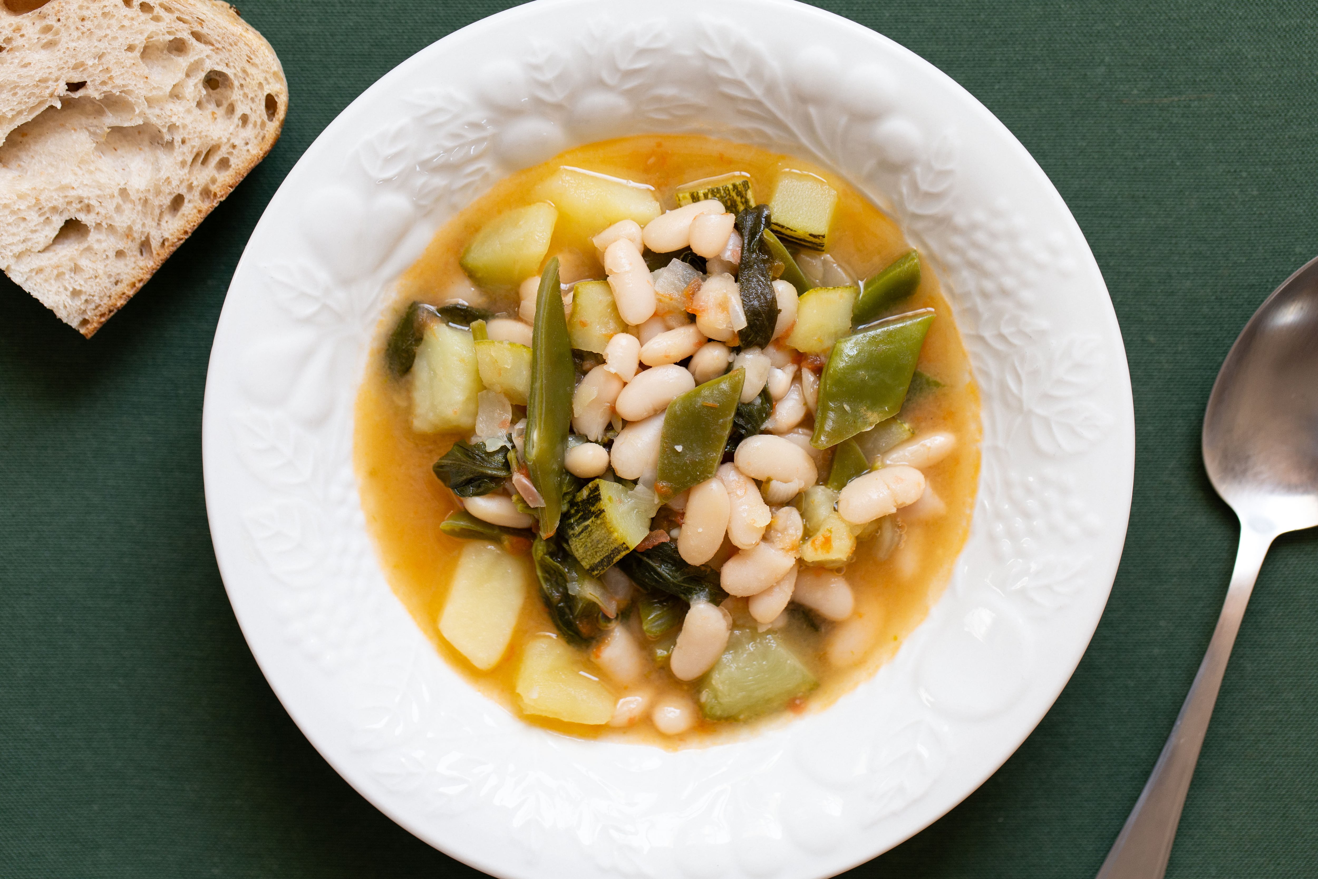Aún quedan algunos días templados para sacar partido a recetas como esta: un plato de cuchara ligero abundante en hortalizas. La escudella fresca es típica de Mallorca y se denomina así porque es habitual prepararla con judías frescas y tiernas que se cosechan en verano en la isla (las mongetes de pasta reial o las mongetes de confit son las más comunes). Al igual que con cualquier plato de olla que se precie, las reglas para prepararlo no son inamovibles: puedes hacerlo con otro tipo de judías tiernas, o como es nuestro caso, ya que no es verano ni por desgracia estamos en Mallorca, con legumbre seca o de bote.