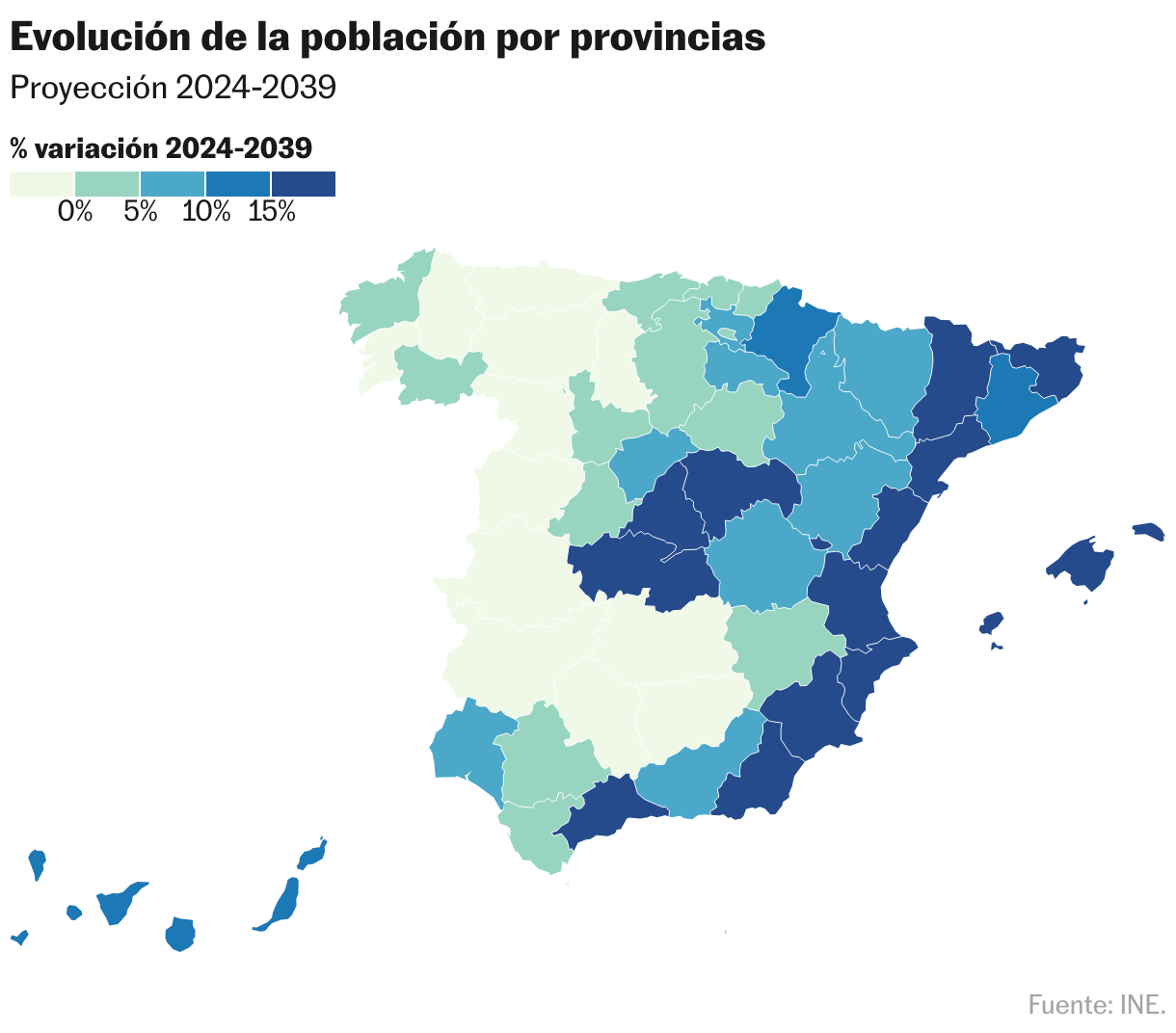 Pero la población, aunque crece en el conjunto del país, no lo hace por igual en todas las comunidades autónomas. Si bien aumentaría en 13 regiones, hay cuatro que registrarían una bajada. Baleares y Comunidad Valenciana experimentarían los mayores crecimientos, con un 19%, mientras que los mayores descensos se presentarían en Asturias, con un 4,1%, y en Extremadura, con un 3,4%. Crece más la zona del Mediterráneo, decrecen las regiones más envejecidas, indica Ramiro, y “no se aprecia ningún patrón de recuperación en los próximos años, sino que se acentúa ese efecto”. Esteve apunta al “impacto asimétrico” de la migración en el territorio.