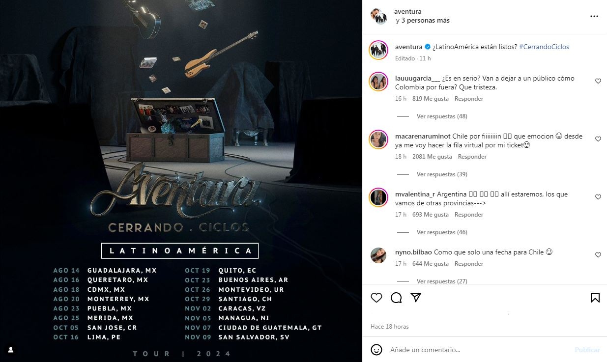 Aventura es liderado liderado por Romeo Santos, la presentación en Venezuela entra como parte de su gira de despedida Cerrando ciclos, que comenzó este mes en Estados Unidos.