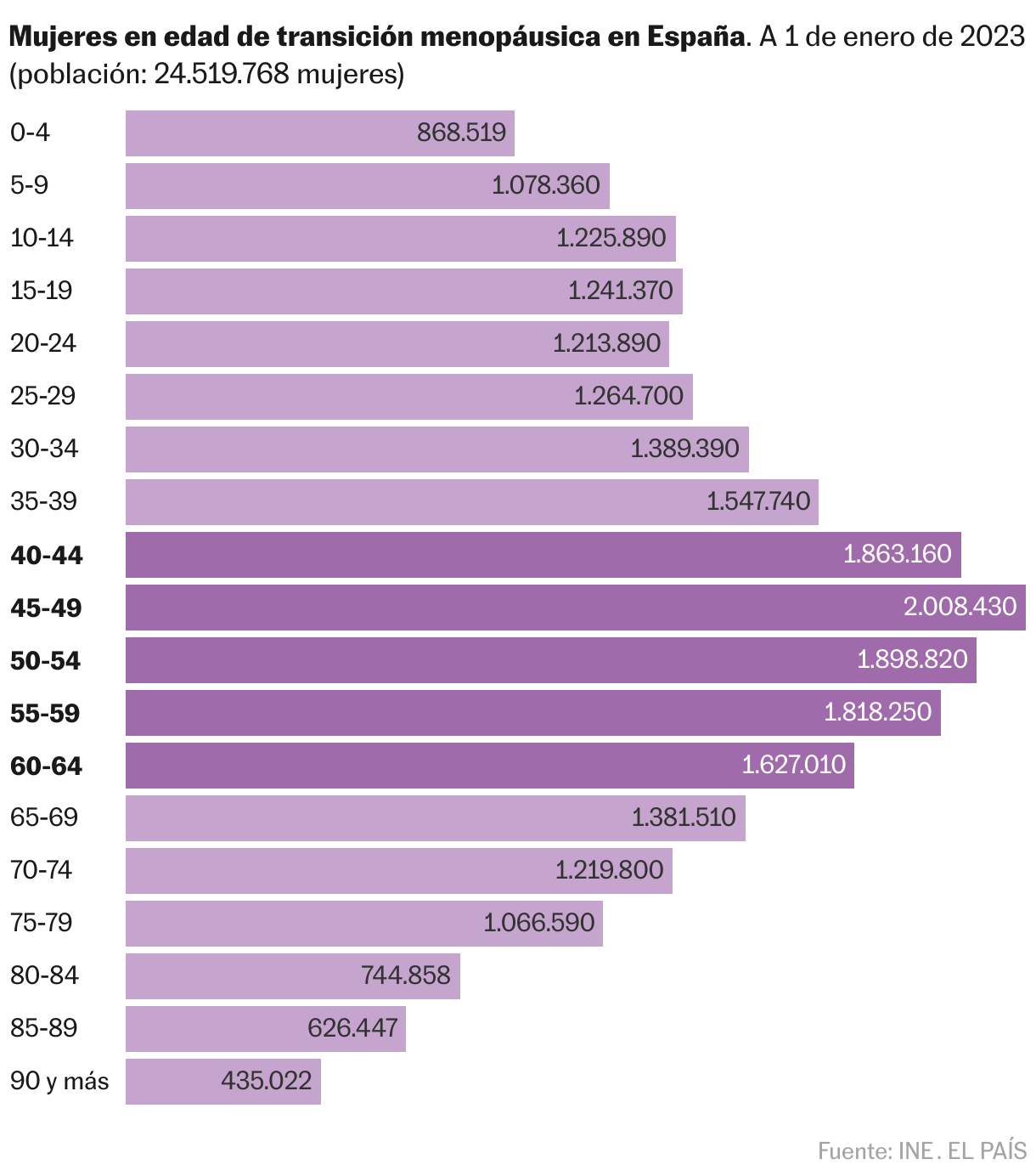 Hay varios factores que explican el despertar de la economía de la menopausia. El demográfico es apabullante. La pirámide poblacional global está evolucionando hacia una sociedad cada vez más longeva. La mayor esperanza de vida ganada ha puesto el foco en esta etapa vital. “Antes no se hablaba de menopausia porque las mujeres morían antes de cumplir los 50 años”, recuerda Juan José Vidal, fundador y director de la Unidad de la Mujer del Hospital Ruber Internacional desde 1991. En 2030 “habrá 1.100 millones de mujeres con menopausia en el mundo, es decir, el 12,5% de la población mundial. Y cada año, 47 millones de mujeres entrarán en esta fase. Es una cifra asombrosa”, cuenta Dignam. Hay pocos segmentos de la población tan grandes y, a la vez, tan ignorados durante tanto tiempo. Desde Frost & Sullivan afirman que “la cifra es superior a la prevalencia de la mayoría de las enfermedades crónicas”.