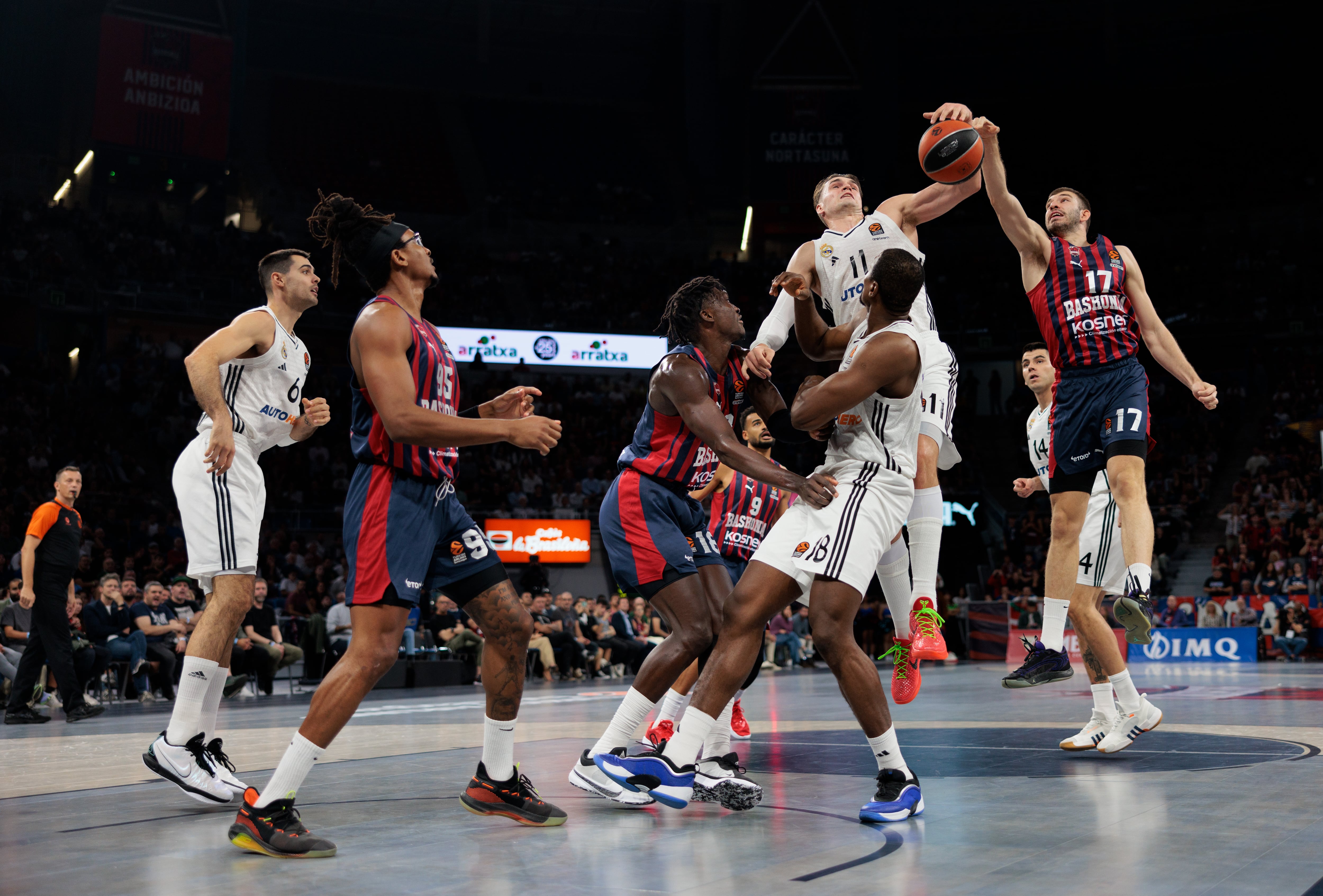 Con la urgencia que da saber que están vigilados por su comienzo no demasiado regular, tanto Baskonia como Real Madrid salieron a la cancha del Buesa con intención de mandar sobre su rival, meter los dedos en las heridas del contrario y comenzar una redención que en el deporte profesional solo llega con victorias. Acaba de comenzar la temporada, todavía es muy pronto, pero ni los vitorianos ni los madrileños son equipos de medio pelo, y se les exige más que a otros. Para los blancos esa exigencia se multiplica. Al final fue el Baskonia el que se manejó mejor en la locura de los minutos finales para ganar su segundo partido.