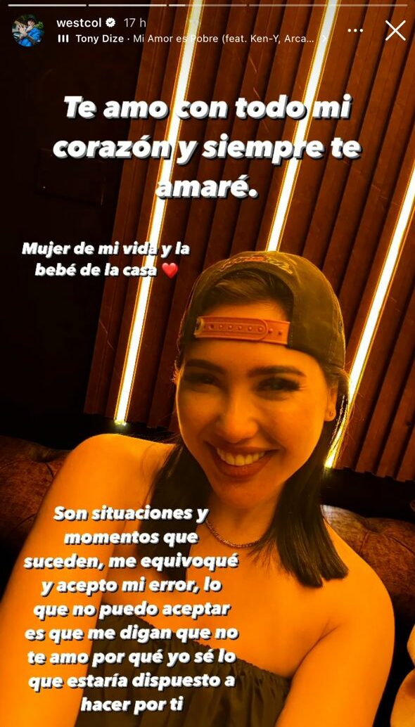 “Te amo con todo mi corazón y siempre te amaré. Mujer de mi vida y la bebé de la casa”, escribió Westcol, junto a un emoji de corazón, para destacar que a pesar de la decisión que tomó Merlano, ella siempre tendrá un espacio bastante significativo en su vida.