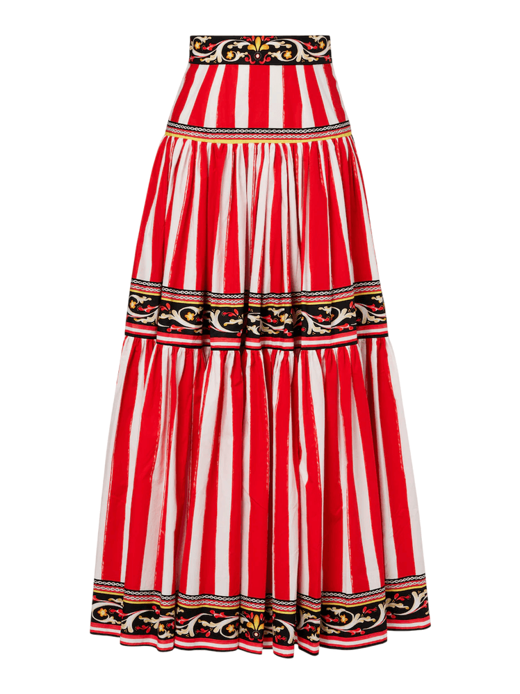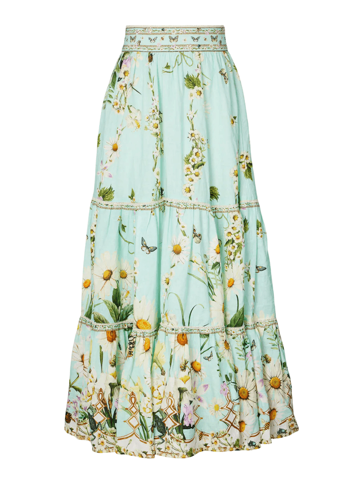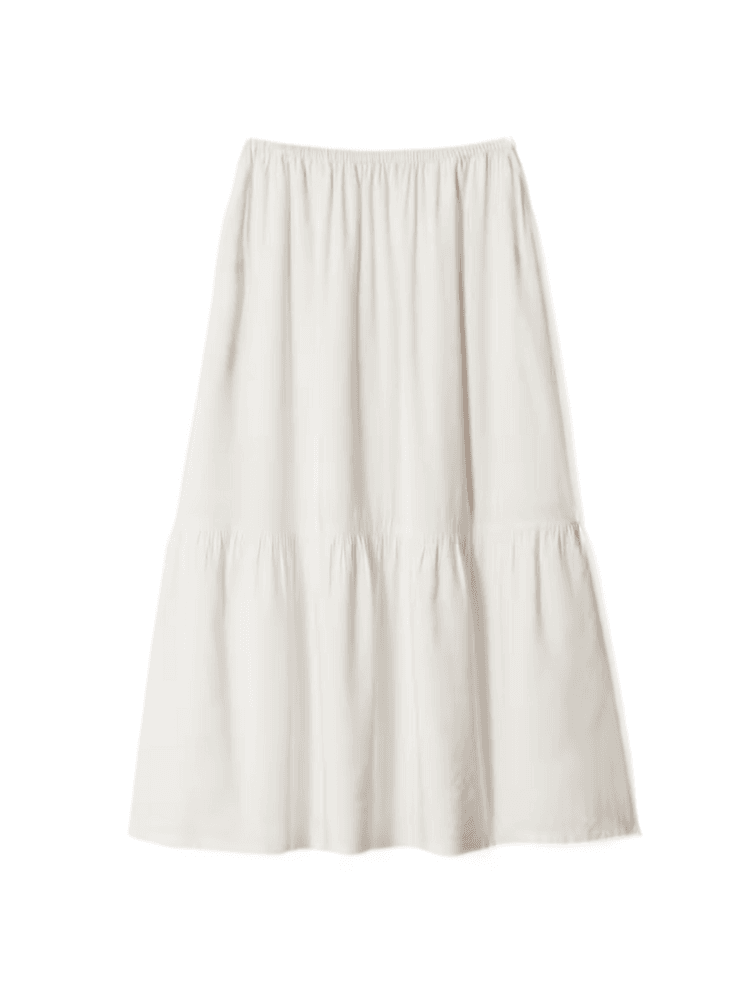 Mi algoritmo de Instagram, mi wishlist y el último cargo de mi tarjeta de crédito tienen algo en común: en los tres aparecen faldas paneladas, la que a todas luces será la nueva prenda fetiche del verano. Y aunque estas faldas alcanzaron su máxima popularidad en el siglo XIX, donde se utilizaban para crear siluetas voluminosas con capas y crinolinas en las cortes europeas, fue durante un viaje a Ibiza en pleno 2025 cuando recaí en que las chicas más cool de la isla las llevaban como prenda comodín —esa pieza que sirve para ir a la playa por la tarde, pero también para cenar en el chiringuito de moda por la noche— y, también, en que no podía sentar mejor. Esto último, independientemente de la edad o la talla de quien la luciese. Así, puse rumbo a Las Dalias —mercadillo hippy que se celebra en el norte de la isla desde 1954— con una misión: encontrar la falda panelada perfecta. La elegida, una de los años 60 que me pareció toda una joya, y a la que esta semana he sumado otras dos.