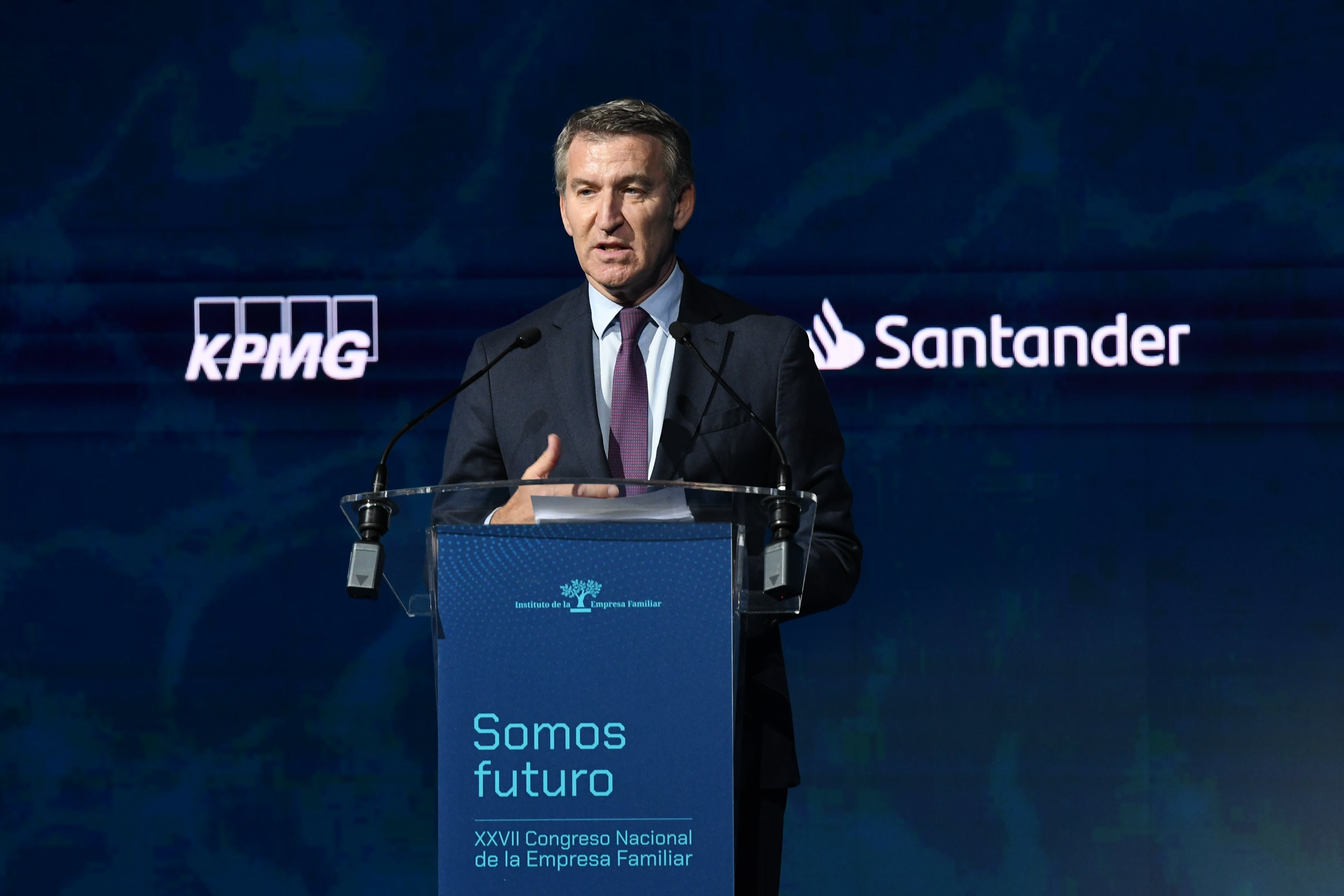 El presidente del Partido Popular, Alberto Núñez Feijóo, encontró este mediodía una ocasión perfecta para atacar al Gobierno por lo que consideró “un expolio fiscal a empresas y ciudadanos” y para presentar ante los 500 representantes en el XVII Congreso de la Empresa Familiar un programa económico con rebajas de impuestos. Música para los oídos de los empresarios que devolvieron el cumplido de Feijóo con el único aplauso en toda la jornada tras pronunciar la siguiente frase: “Faltan empresas y sobran muchos ministros”.