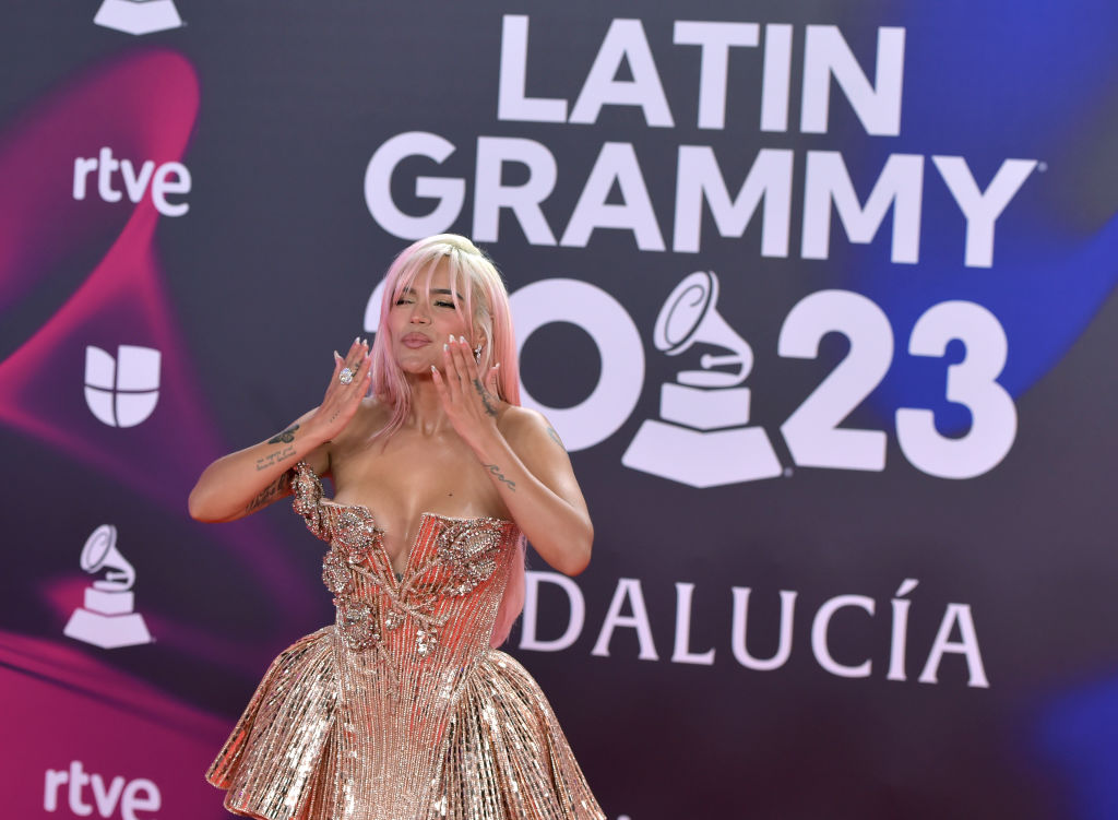 Karol G en la alfombra roja de los premios Latin Grammy 2023 en el Palacio de Congresos y Exposiciones FIBES el 16 de noviembre de 2023 en Sevilla, España. (Crédito: Juan Naharro Gimenez/Getty Images)