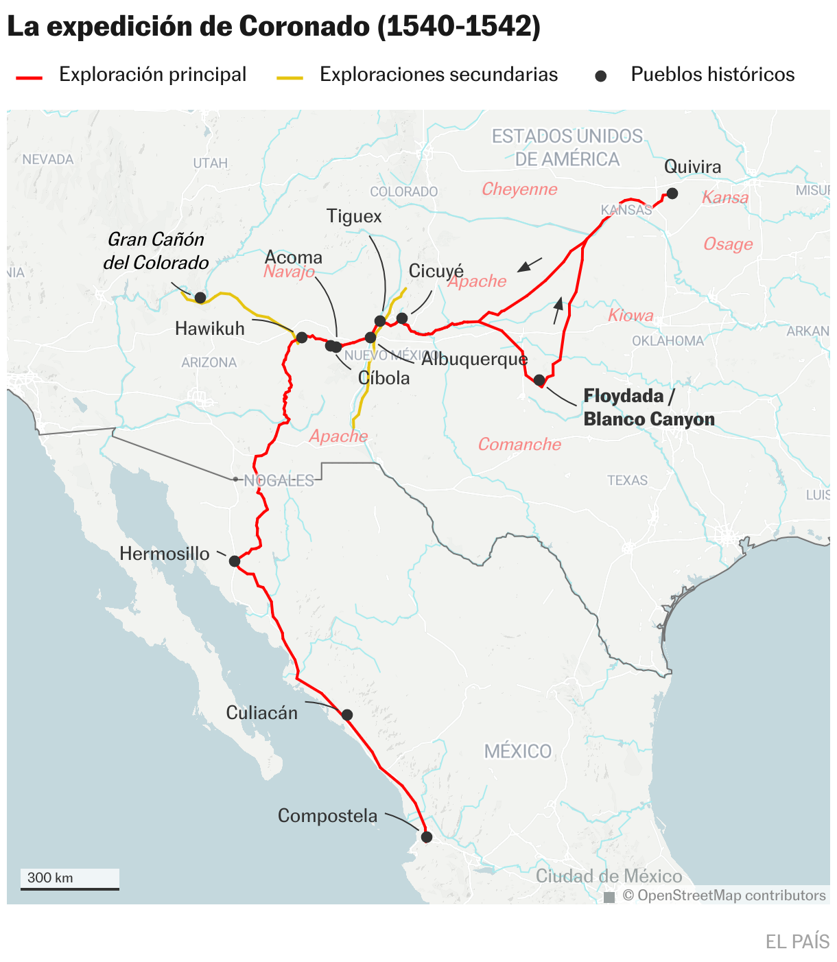 El nuevo artículo, firmado por Raúl Sánchez Rincón, del Museo de Arqueología de Álava, y Iagoba Ferreira Benito, recreador histórico, desvela el hallazgo en los últimos años de proyectiles para ballestas, alfileres de ropa y monedas medievales, abandonados o perdidos por la expedición. Unos 300 españoles, a caballo o infantería, y cerca de mil indios aliados atravesaron los actuales Estados de Arizona, Nuevo México, Texas, Oklahoma y Kansas. La búsqueda de las ciudades resultó infructuosa, pero a cambio descubrieron el Gran Cañón del Colorado, una formación natural que fue declarada Patrimonio Universal de la Unesco en 1979.