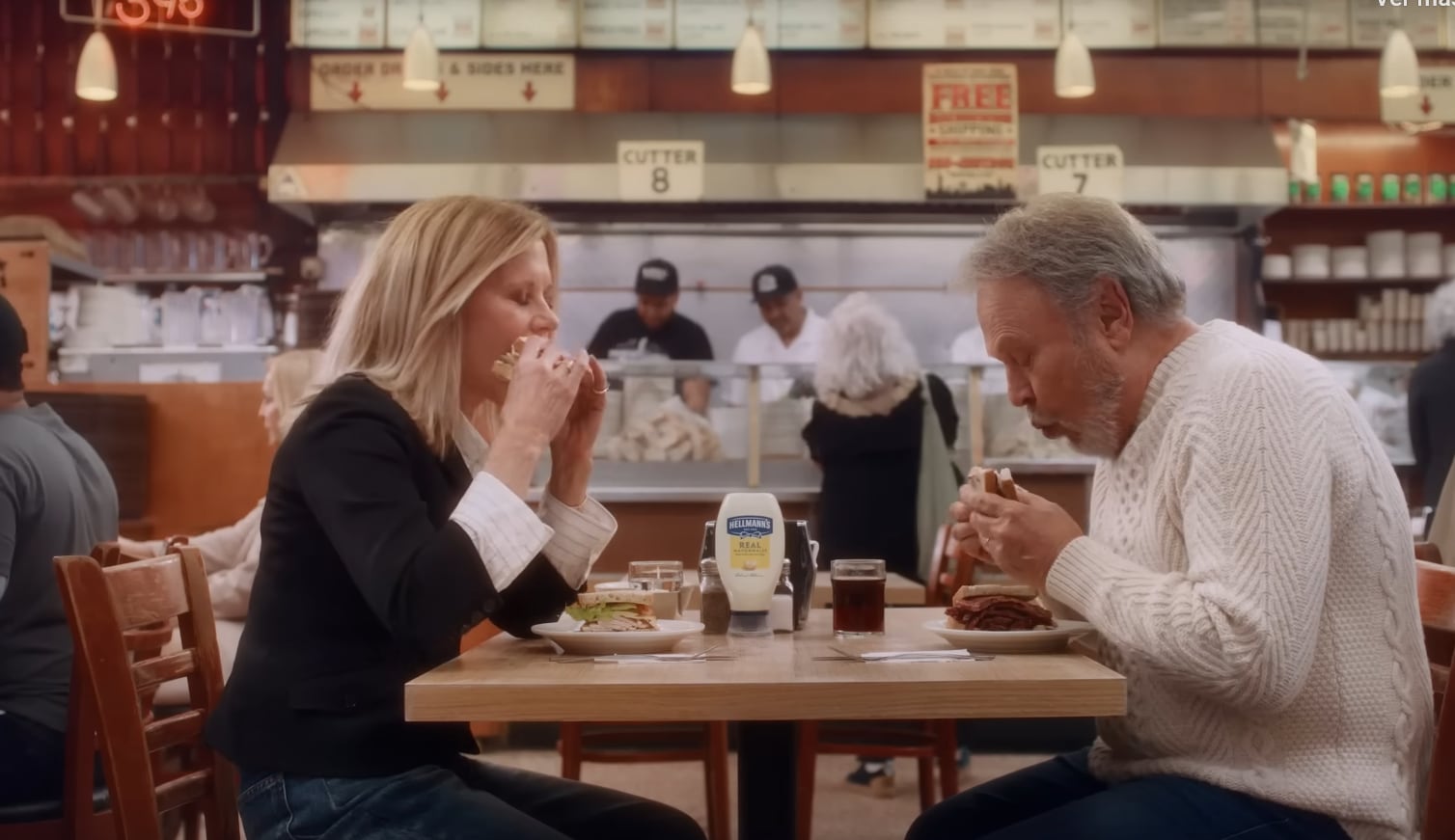 La marca de mayonesa recrea la escena más icónica de la película Cuando Harry encontró a Sally (1989), en la que Meg Ryan finge un orgasmo en un restaurante. Esta vez, Sally se pide un sandwich que no le gusta demasiado hasta que le pone mayonesa. Entonces empieza a gemir de placer. “Este es real”, bromea Billy Crystal. “Eso sí que es un sándwich”, responde Meg Ryan. Unas mesas más allá, es la actriz Sydney Sweeney la que repite la frase que cierra la escena: “Tomaré lo mismo que ella”.