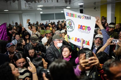 “El Pacto Histórico sin duda es la fuerza política más grande, más poderosa” en el país, ha dicho este domingo, tras conocer los resultados preliminares. En un pequeño, pero abarrotado auditorio, agradeció antes que nada a los campesinos indígenas y otros sectores sociales que lo impulsaron. También pidió que la campaña se haga sobre propuestas, no sobre insultos, y se mostró muy optimista. “Tenemos todos los ingredientes, todas las condiciones, para construir un segundo gobierno progresista”