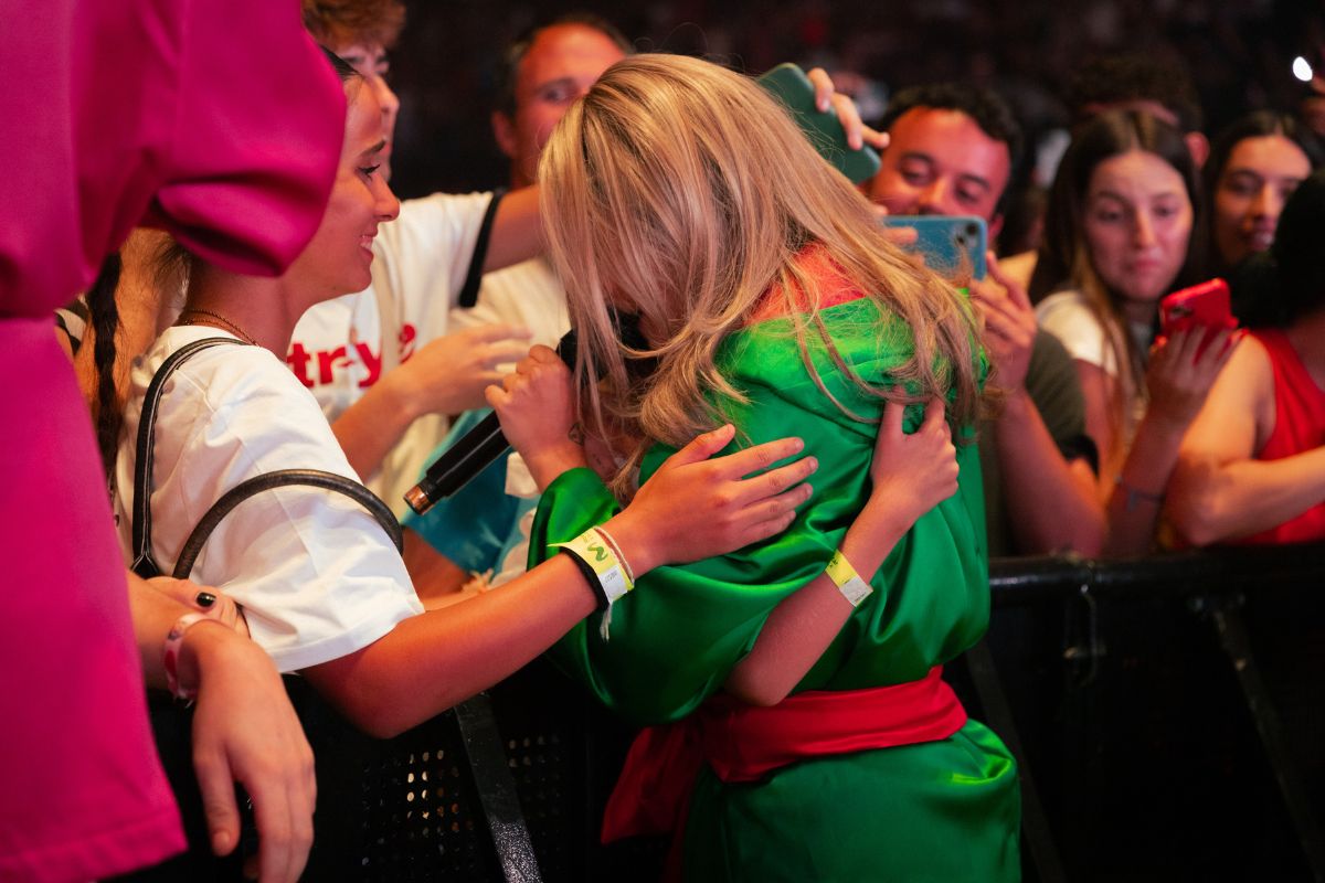 La artista irrumpió en el escenario, decorado con gigantes cortinas rojas, con una peluca rubia y una gabardina amarilla, acompañada de media docena de coristas y bailarinas, con pasos de muñeca de pilas agotadas y cierto gesto «cringe». Sonaron sin descanso, hilvanadas pese a sus múltiples diferencias estilísticas, la medio latina ‘JAJAJA’, la pizpireta «Club Xavalas Tristes» y la muy Mecano ‘Simpática pero problemática’.