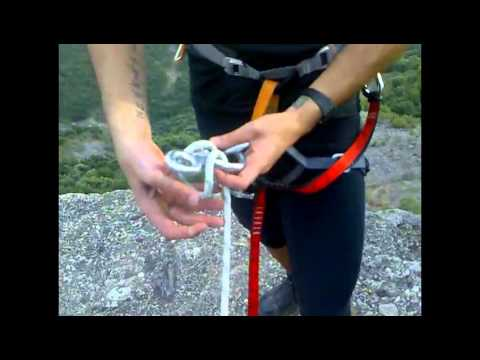 Montaje del descensor: El dispositivo más común es el «ocho», aunque existen otros más modernos. Este se conecta al anillo ventral del arnés con un mosquetón de seguridad y se pasa la cuerda a través de él siguiendo una técnica específica que crea la fricción necesaria para controlar el descenso.