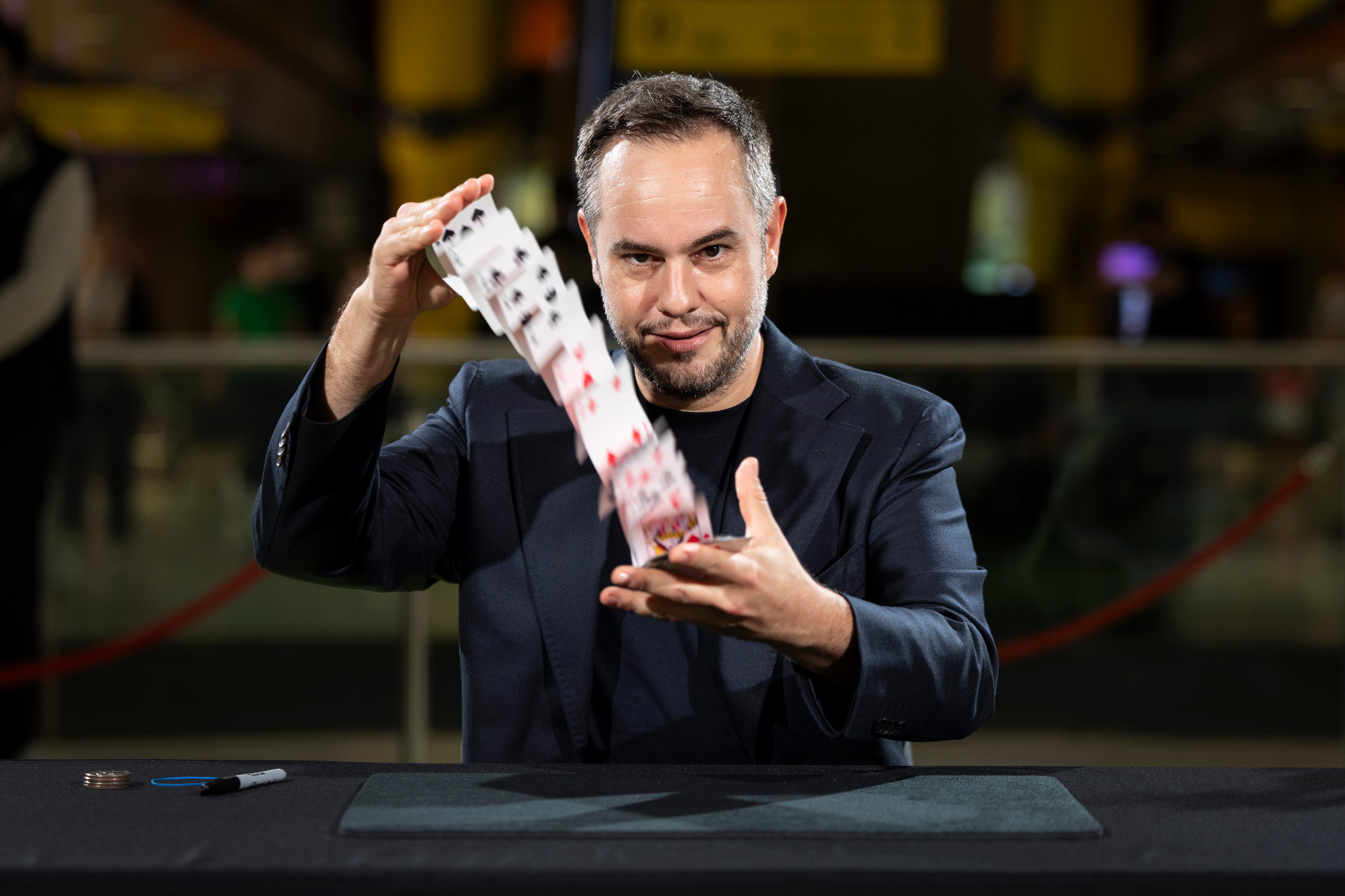 Jorge Blass habla con entusiasmo de la magia y va a llevar ambas emociones al Poliorama durante un mes, del 28 de noviembre al 22 de diciembre. El espectáculo se llama Flipar, palabra que según la RAE quiere decir quedar o estar maravillado, asombrado o extrañado. Hay efectos como convertir en invisibles a dos espectadores, teletransportaciones, etc, pero también rutinas que son miniaturas históricas de la magia. Por ejemplo, la manipulación. “Ahí no hay artificios, es la esencia de la magia. René Lavand decía que era la credencial de la magia”. Y recupera un juego de cartas que vio hacer a Tamariz en la televisión cuando tenía seis años. “Me impresionó y he querido recuperarlo, hacerlo mío. El espectáculo exige camiones de transporte, pero este efecto se hace con una baraja y un rotulador. Eso basta para fascinar al público. La magia es eso, emoción”. Este juego lo repitió en octubre en una actuación promocional abierta en un centro comercial de Barcelona. “El mago Dai Vernon se lo hizo a Houdini (1874-1926) y éste no entendió nada. Yo quise repetirlo el 31 de octubre, el día del aniversario de la muerte de este gran escapista”.