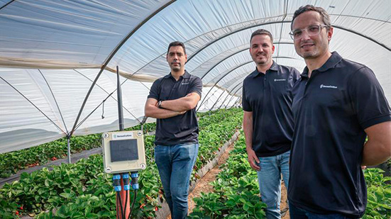Esta compañía ha perfeccionado una herramienta de monitorización de cultivos de distintos tipos –aunque en Huelva se aplica especialmente en los de invernadero- a través de unos sensores instalados en la tierra que miden parámetros del suelo como la humedad, la temperatura, el efecto del clima y del ambiente. Esa información les llega a los agricultores a través de una aplicación para móvil con recomendaciones “fáciles de interpretar y que les sirven para aplicar el riego adecuado en cada momento”, detalla Daniel Márquez, ingeniero industrial y fundador de Sensacultivo.
