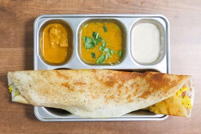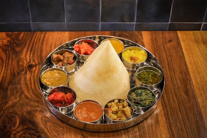 La capital presume de tener una escena gastronómica de primera categoría, pero se echaba de menos los sabores de la cocina del sur de la India. Aunque es posible prepararla en casa, hacerlo requiere varios pasos, utensilios específicos y procesos largos —sobre todo cuando hay fermentación de por medio, que puede tardar días—. Pero más que los obstáculos del propio cocinado, lo que he echado en falta es la experiencia de sentarme a la mesa y disfrutar de esa comida deliciosa junto a desconocidos que hacen exactamente lo mismo que yo.