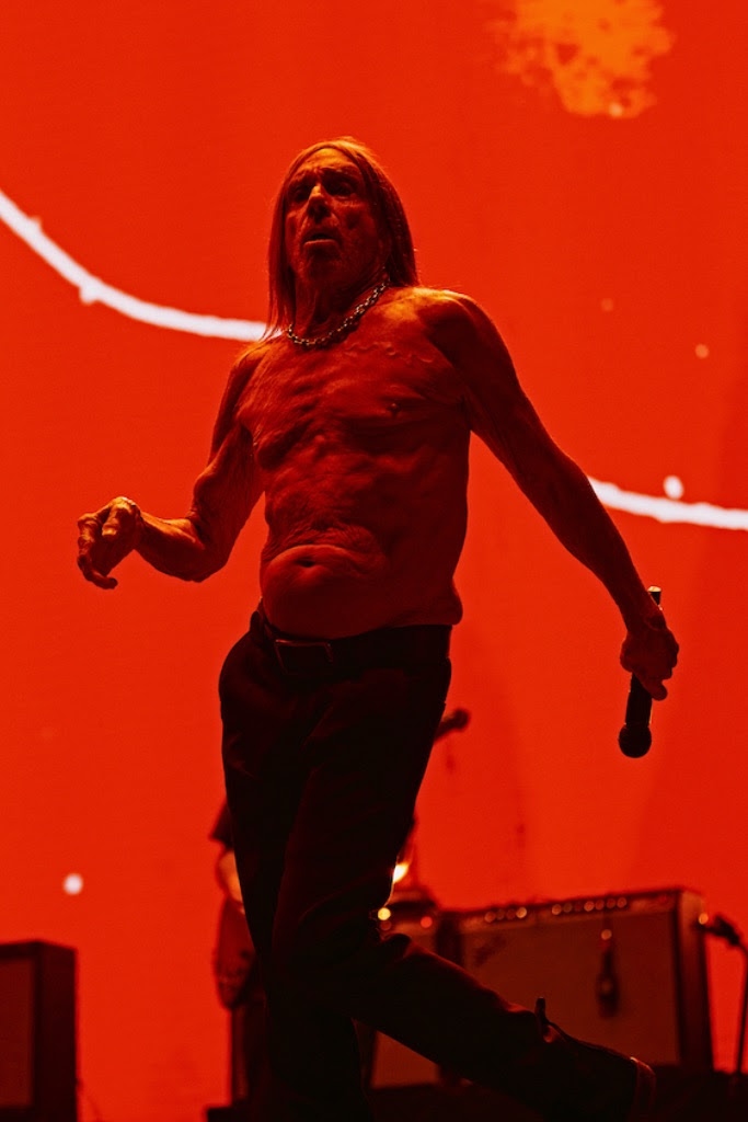 ‘Search and Destroy’ o ‘Down in the Street’ se encadenan en un repertorio de puro punk-rock enloquecido que no baja el ritmo en ningún momento. Acaso cuando Iggy Pop se sienta en un altavoz para descansar. Pero pronto Iggy baja al foso y actúa cerca del público, aunque se encuentra con un grupo de fans de Bad Gyal situadas en primera fila que le observan completamente desconcertadas. Pero nada -tampoco su visible escoliosis- impide a Iggy Pop entregar la energía que la audiencia espera de él.