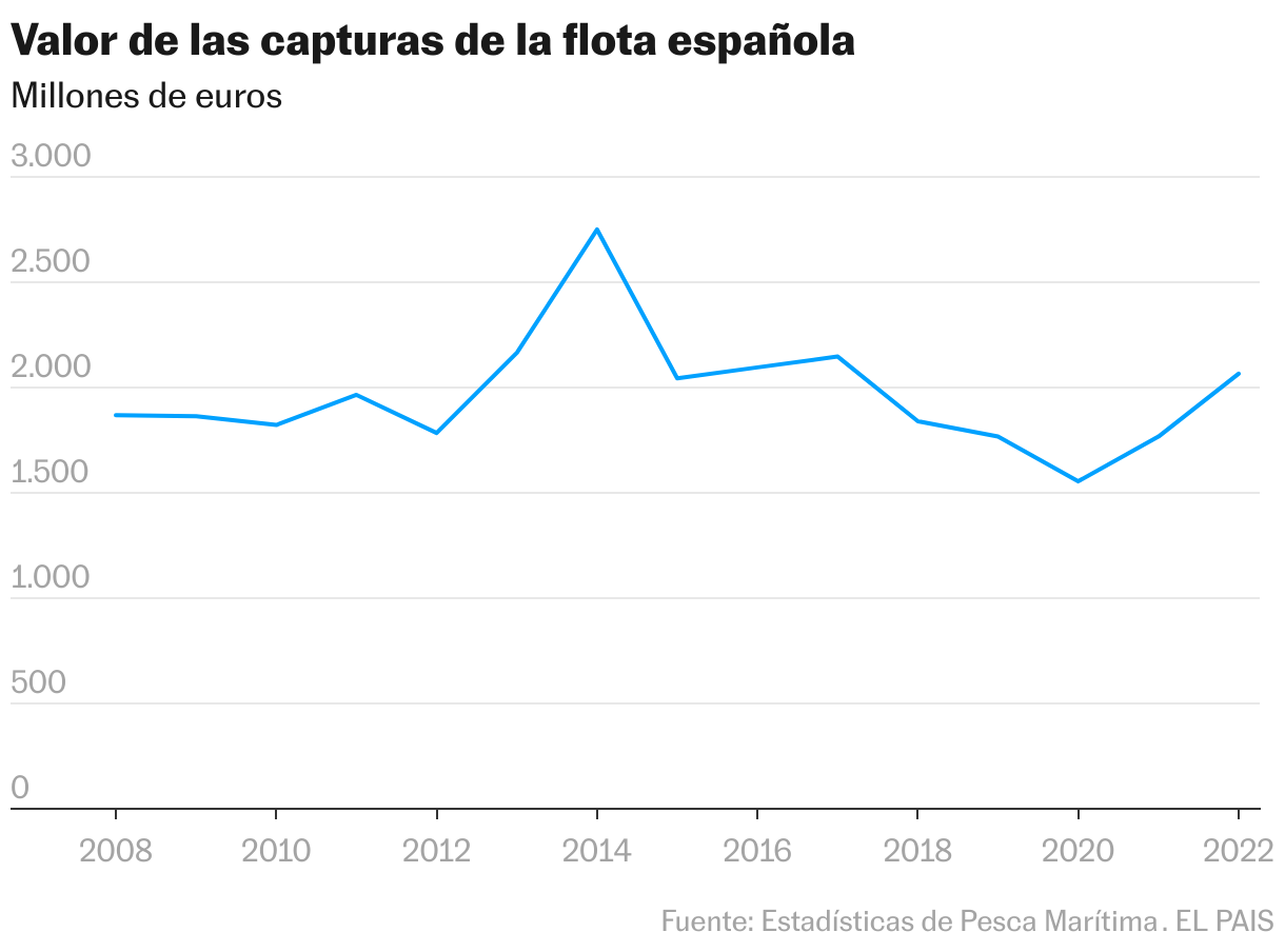 A los que se han quedado, siempre hablando de medias globales, no parece irles mal. Los datos recogidos en la Encuesta Económica de Pesca Marítima muestran que la rentabilidad por buque ha crecido globalmente un 28% entre 2021 y 2022 (últimos disponibles). Lo que no han crecido, por cierto, han sido los gastos de personal (un 7% acumulado entre 2020 y 2023 frente a una inflación del 15,5% en el periodo). “La rentabilidad va por barrios”, define la patronal, distinguiendo entre pesca artesanal, bajura o altura. “Las empresas que faenan en el caladero Gran Sol y que resistieron a la crisis cuando se implantó el plan de recuperación de la merluza norte están en situación bastante razonable”, apunta Garat. La restauración del atún rojo del Atlántico volvió a llenar las almadrabas, pero los cerqueros del golfo de Cádiz sufren con las restricciones de sardina y a los arrastreros y palangreros de fondo les ha caído la facturación un 30% desde que se quedaron sin poder pescar, a finales de 2022, en 87 zonas del Atlántico nororiental.