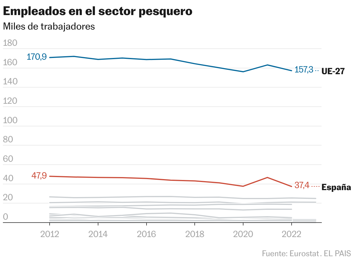 Los peces no suelen ser propiedad de nadie hasta que han sido capturados. Las poblaciones de peces se consideran un recurso común salvaje que necesita una gestión colectiva. Y eso significa negociar. La Política Pesquera Común fue una de las primeras en compartirse en la UE y supuso que los países renunciasen a la soberanía de las aguas (las famosas 200 millas de zona económica exclusiva (ZEE) que se regularía en virtud del principio de igualdad de acceso). Pero el Reino Unido, Dinamarca o Irlanda buscaron una fórmula para protegerse de la previsible entrada de España y Portugal del año 86, y la encontraron al identificarse como regiones altamente dependientes de la pesca. Se creó entonces un sistema basado en la “estabilidad relativa”, que en la práctica supuso el veto de los españoles a ciertas zonas de las aguas comunitarias —los pescadores gallegos todavía recuerdan que tenían prohibido pescar en el llamado Box irlandés—. La historia desde entonces ha dado como resultado un complejo encaje de distintos intereses en los mares para adaptar la capacidad de pesca a los recursos existentes. Algo que se ha conseguido a trompicones y que a menudo deja una imagen poco amistosa del sector. “Así es difícil atraer a la gente a la pesca”, reflexiona Iván López, presidente de Agarba, asociación de buques de bacalao. Entre 2012 y 2022 la pesca española ha perdido 10.000 tripulantes y el consumo parece no tener suelo.
