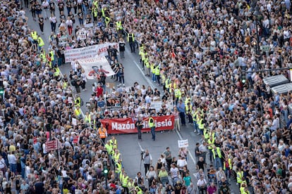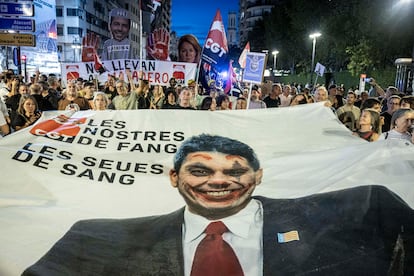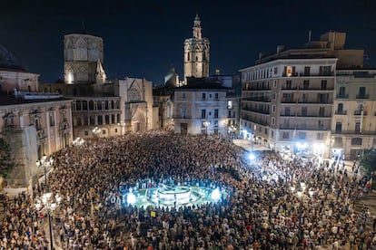 Bajo el lema Mazón dimisión, el mismo que el resto de protestas convocadas durante los últimos 12 meses, la marcha arrancó a la seis y media de la tarde de la plaza de San Agustín de la capital, donde se han oído gritos de “el president, a Picassent”. La Delegación del Gobierno en la Comunidad Valenciana estima en más de 50.000 los asistentes a la protesta que, como en anteriores ocasiones, convocaron más de 200 entidades cívicas, sociales y sindicales en su mayoría de izquierdas de la Comunidad Valenciana, junto a las asociaciones de víctimas de la dana y otras entidades. La Policía Local rebaja la afluencia a 32.000. Se trata, en cualquier caso, de una nueva demostración multitudinaria que recobra la energía ciudadana de las primeras protestas. La presión continúa.