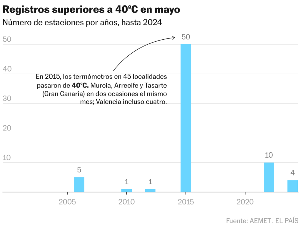 Radiografía de los 40° en mayo en España: ni rastro de ellos hasta 2006 y siete en 19 años | Clima y Medio Ambiente
