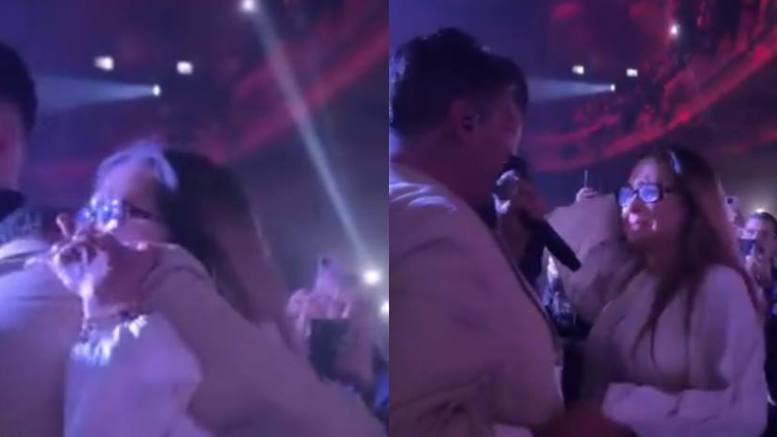 El gesto, espontáneo, fue ovacionado por los presentes, quienes seguían coreando la canción que el artista le dedicó personalmente a su amiga.