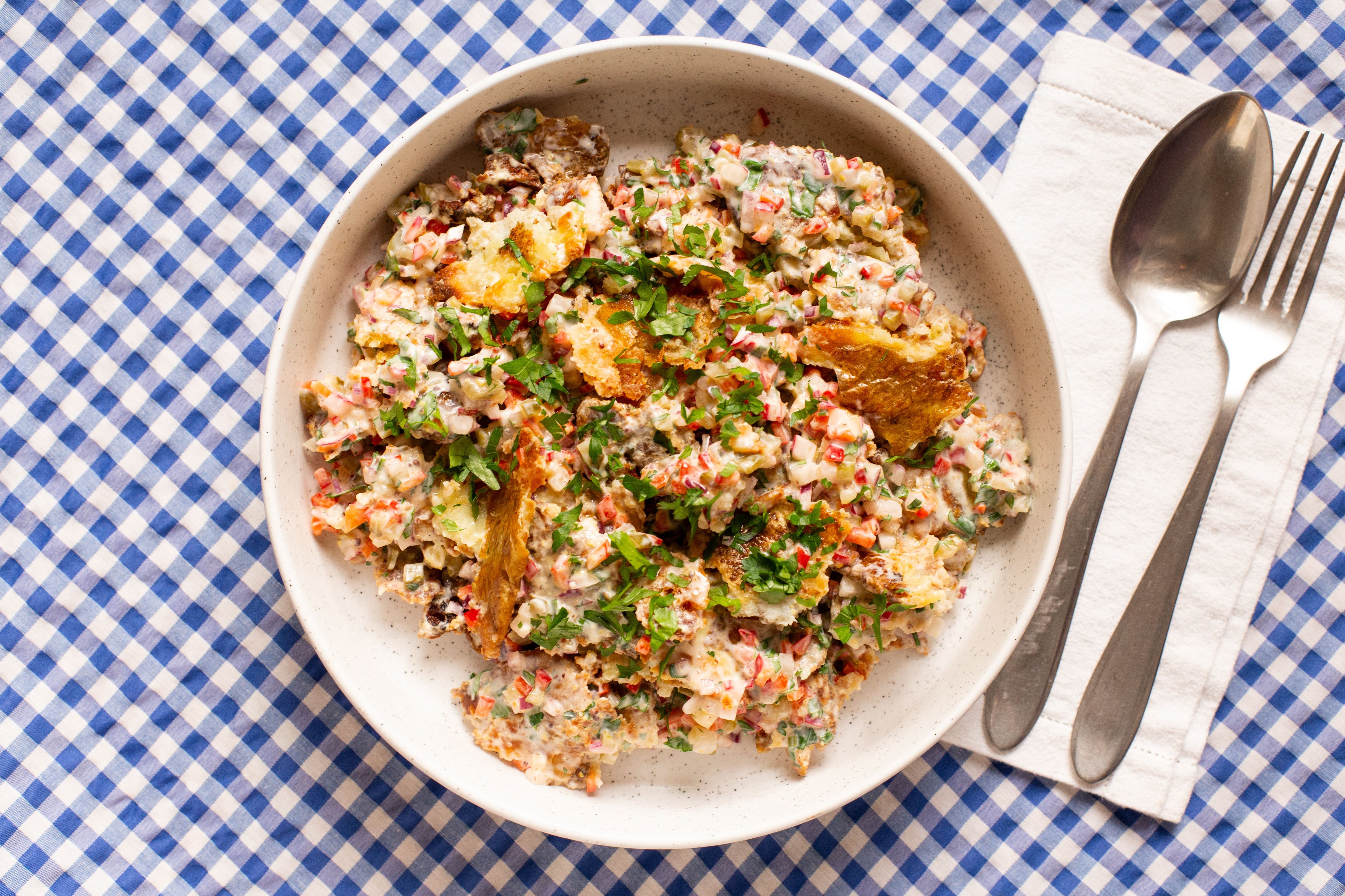 En esta última categoría hemos encontrado recientemente la ensalada de patatas asadas que todo TikTok parece estar probando, tanto que, por ejemplo, tiene nada más y nada menos que 16 millones de visualizaciones en la cuenta Liliya Sapsay (que no es su creadora original). Las probabilidades de que esas patatas asadas con la frescura de los vegetales y la cremosidad del aliño fueran una combinación ganadora eran muy altas, así que probar esta ensalada era casi obligatorio.