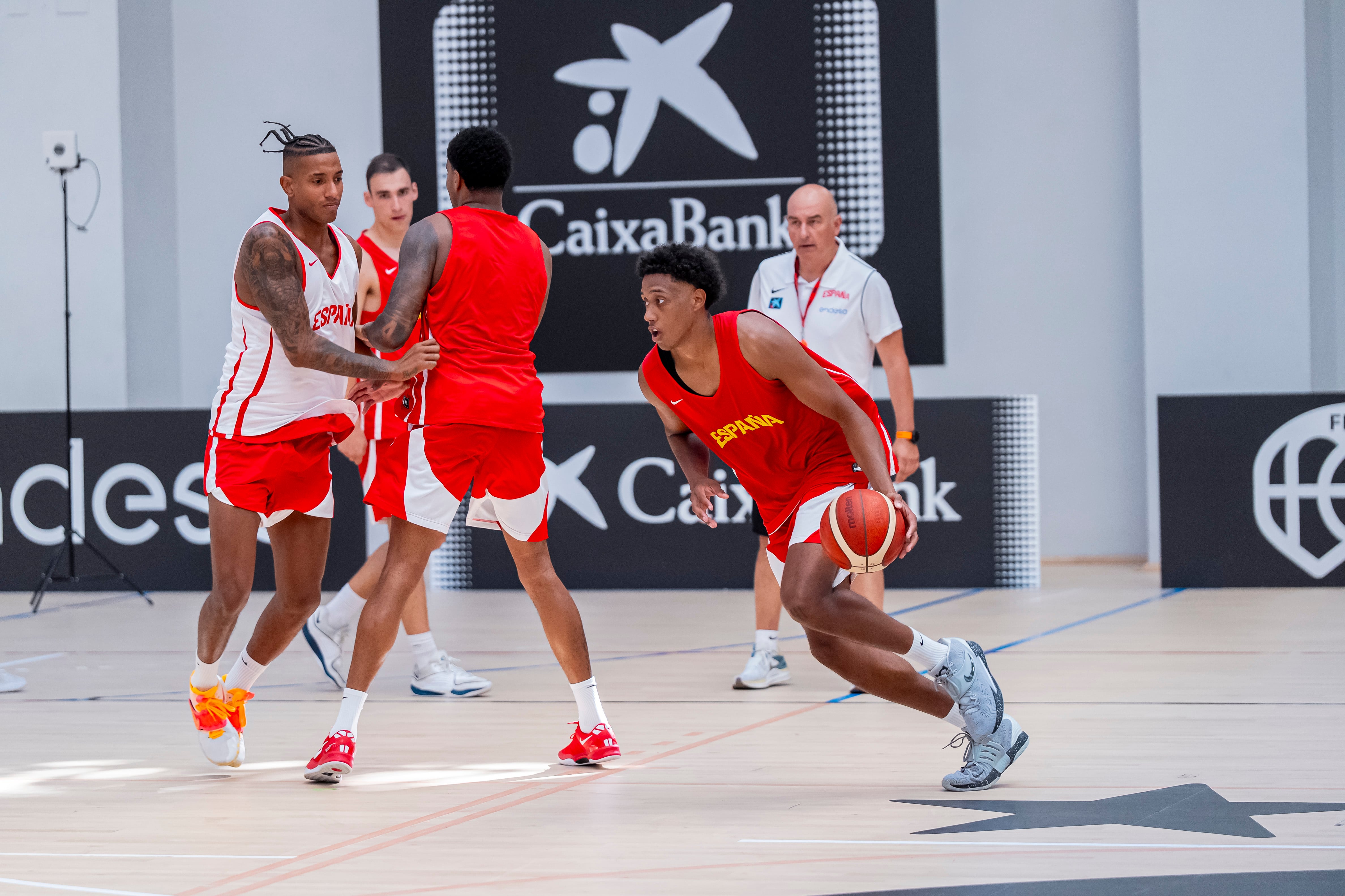 Cada día, la España B se entrena después de la España A, y algunos de los meritorios doblan la práctica y se ejercitan también con los hermanos Willy y Juancho Hernangómez, Alberto Díaz, Joel Parra, Santi Aldama… Son los bases Álvaro Cárdenas, Guillem Ferrando, Lucas Marí y Adrià Rodríguez; los escoltas Michael Caicedo, Lucas Langarita, Isaac Nogués y Jordi Rodríguez; los aleros Owen Aquino, Millán Jiménez y Baba Miller; y los ala-pívots y pívots Great Osobor, Guillermo Díaz Graham, Álvaro Folgueiras y David Gómez, entrenados por Jaume Ponsarnau, técnico del Bilbao Basket.