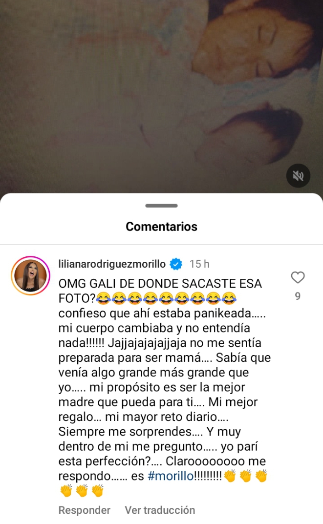» OMG Galilea dónde sacaste esa foto?» confieso que ahí estaba panikeada, mi cuerpo cambiaba y no entendía nada, no me sentía preparada para ser mamá. Sabía que venía algo más grande que yo», escribió Liliana Morillo en la publicación de la red social de la camarita que le dedicó Galilea.