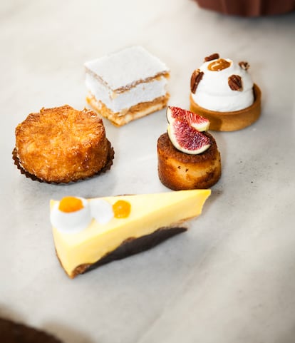 Con la renovada confitería, huyó de vitrinas repletas de pasteles, buscando primar la frescura y la estética del producto, así como el sabor. Si algo se agota, no se repone hasta el día siguiente. Ejemplo de ello son sus palmeras bañadas con chocolate Valrhona, que suelen acabarse antes del mediodía. Si el nivel de sus pasteles está a la altura de cualquier confitería de una capital europea, sus precios no lo están. Se pueden encontrar, por ejemplo, milhojas a 2,10 euros o especiales como los semifríos, a 2,30 euros. “En las ciudades, este tipo de pasteles son más caros, pero si algo quería era mantener la clientela local. Aunque los márgenes son ajustados, las cuentas salen”, explica Pereira, sentada en su obrador.