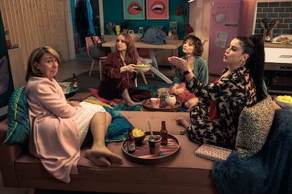 La serie que protagonizan Cristina Castaño, Teresa Cuesta, Gracia Olayo y Marimar Vega podría verse como el reverso femenino de Machos alfa. De hecho, la serie de Netflix tiene su origen en una historia que Araceli Álvarez de Sotomayor propuso en la productora Contubernio, pero entonces pensaron que había muchas series de mujeres. “Y yo pensaba, ¿cómo que muchas series de mujeres? Hay series con mujeres que escriben, que dirigen, que hacen la producción ejecutiva, que actúan… Yo estaba empeñada en que quería hacer esta serie, y cuando he volado sola he tenido la suerte de que SkyShowtime ha creído en el proyecto”. Tampoco quería parodiar las tradwives (esposas tradicionales) o su estilo de vida. “Yo no tengo ganas de polémica, solo hago la serie para divertir. Quería hablar de la libertad de elección, que todas las opciones sean respetadas. Y divertir, ese es el objetivo”.