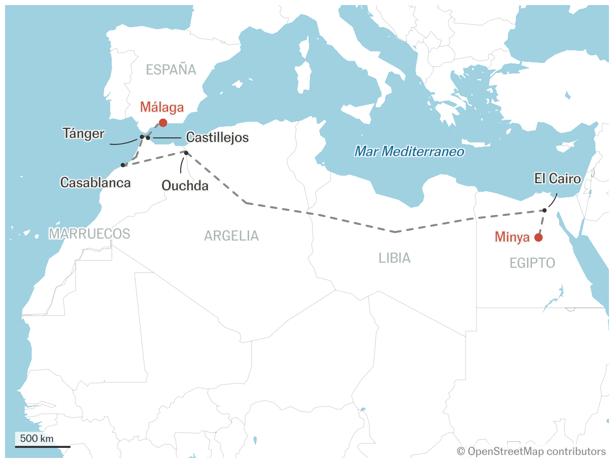 Rafie nació en Minya, una ciudad egipcia a orillas del Nilo, algo más de 200 kilómetros al sur de El Cairo. Fue en ese río donde de niño aprendió a nadar. En noviembre de 2020 dejó Egipto. Quería prosperar y soñaba con vivir en Francia, el motor que mueve toda esta historia. Quería llegar allí, trabajar, formar una familia. Pasó cuatro años en Libia cultivando tomates y calabacines y haciendo peonadas en obras para poder pagar la siguiente etapa del viaje. Luego cruzó a Argelia, escondido, ayudado por las mafias a las que pagó 400 euros. Y Argelia, donde la inmigración irregular es un delito, fue una experiencia horrible. A Rafie lo arrestaron mientras intentaba entrar en Marruecos y lo encerraron una semana antes de dejarlo marchar.
