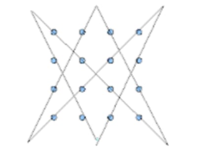 La semana pasada vimos una solución al problema de unir una cuadrícula de 4×4 puntos con solo seis trazos rectilíneos sin levantar el lápiz del papel ni pasar dos veces por un mismo trazo. He aquí otra, elegantemente simétrica y cíclica: