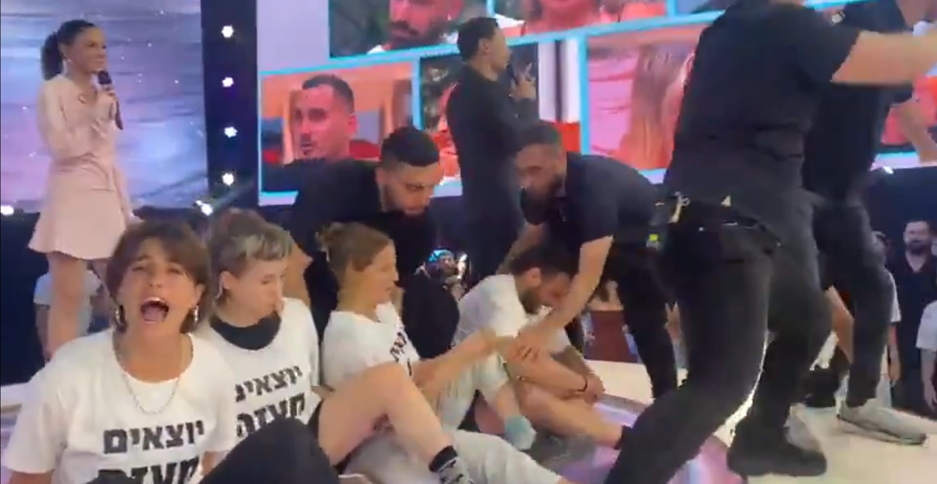 Me he acordado de estas dos ficciones cuando he visto a unos activistas irrumpir en el plató de HaAh HaGadol 15, el Gran Hermano israelí. Son miembros de Standing Together, una asociación israelí pro Palestina. En sus redes sociales emitieron un comunicado posterior: “Interrumpimos la emisión en directo de Gran Hermano Israel anoche para pedir el cese de la aniquilación en Gaza y el abandono de los rehenes. Porque solo a una hora de los estudios de televisión los palestinos están siendo bombardeados, desplazados, están muriendo de hambre y los rehenes han sido abandonados, todo por el plan mesiánico de ocupación en Gaza de nuestro gobierno. Tenemos que parar esta catástrofe”.