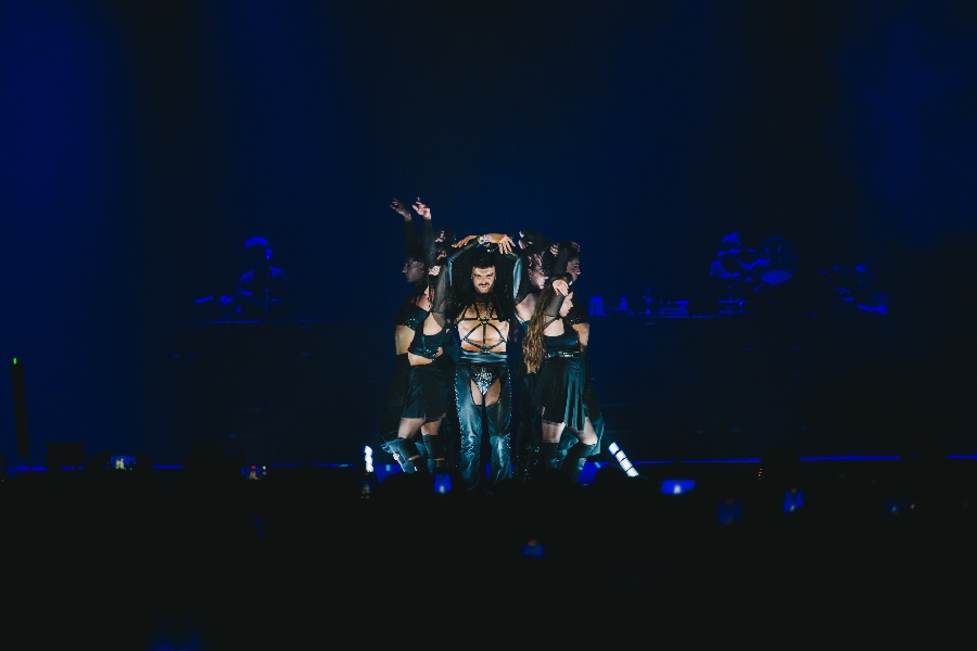 Tocar en el Movistar Arena, o sea, en el WiZink Center, quiero decir, en el Palacio de los Deportes, se ha convertido en un reto para los artistas que hace muy pocos años no lo eran. Este sábado fue el turno de Rodrigo Cuevas como parte del ciclo Inverfest, que con su último disco ‘Manual de Romería’ está acariciando un estatus ya de superestrella. En algún momento entre su paso por ‘Lo de Évole’ y su colaboración con Rozalén se ha popularizado tanto que sus seguidores ya no caben en recintos para 2.000 personas. Es verdad que Cuevas no abrió todos los graderíos, también lo es que agotó estas 8.000 entradas hace semanas. El boca a boca le va a seguir funcionando porque lo que se vio este sábado fue muy fuerte. Un gran show en lo técnico, con una veintena de personas sobre el escenario entre músicos y bailarines, por no hablar de sus dotes como “performer”. Rodrigo no dejó que, a lo largo de 2 horas y cuarto de concierto (!), el ritmo decayera ni un solo instante. Ni un solo tema en el que no pasara algo.