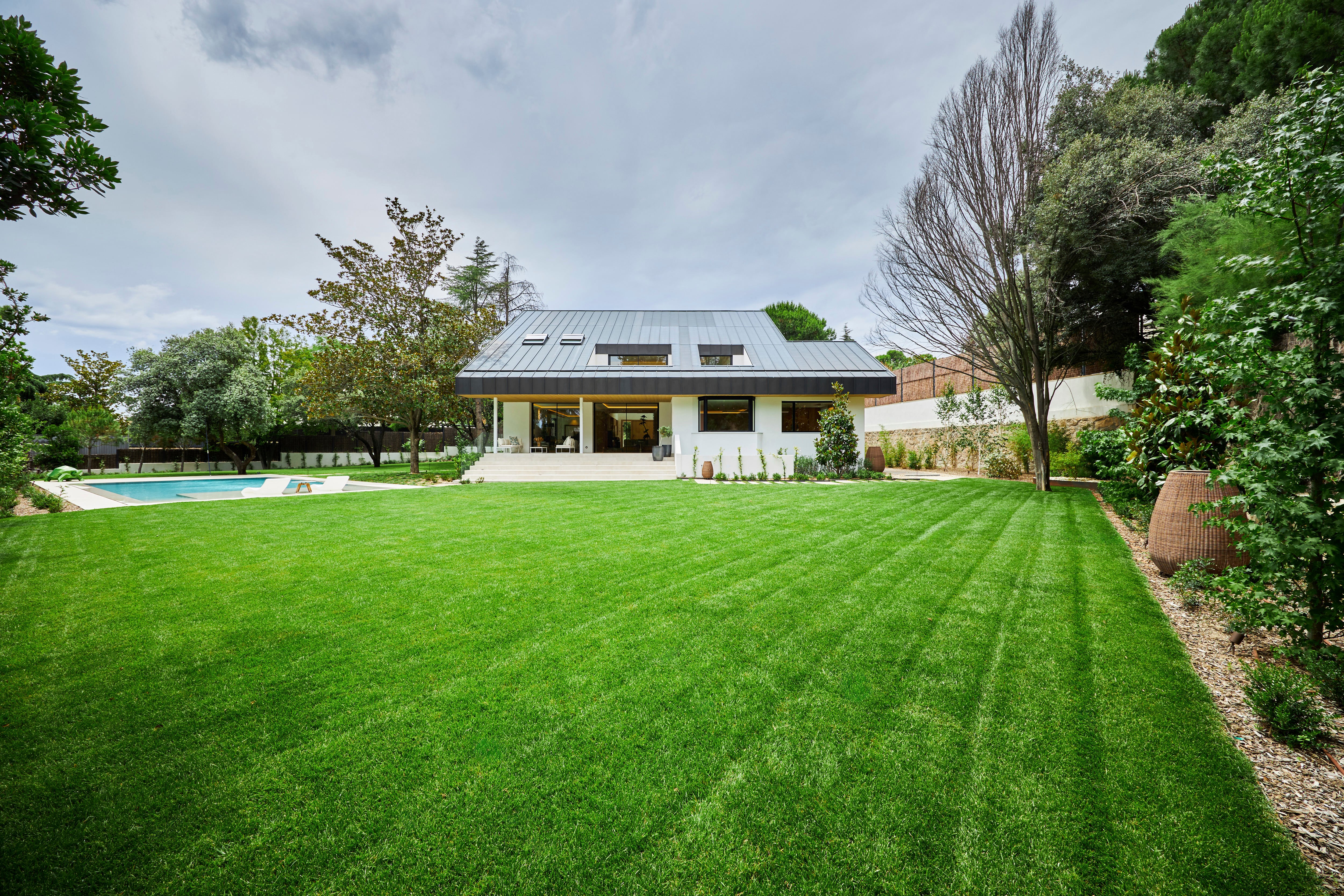 Este unifamiliar de arquitectura vanguardista tiene, de entrada, dos atractivos. Está para estrenar y se encuentra en la exclusiva urbanización de La Moraleja, en una de las calles más tranquilas y privadas. Hay otros, como sus más de 1.000 metros de superficie construida o su jardín de diseño con piscina. Su distribución se articula en dos plantas y un sótano.